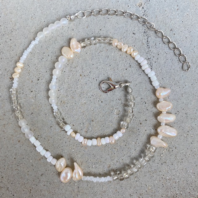ホワイトパールのビーズネックレス