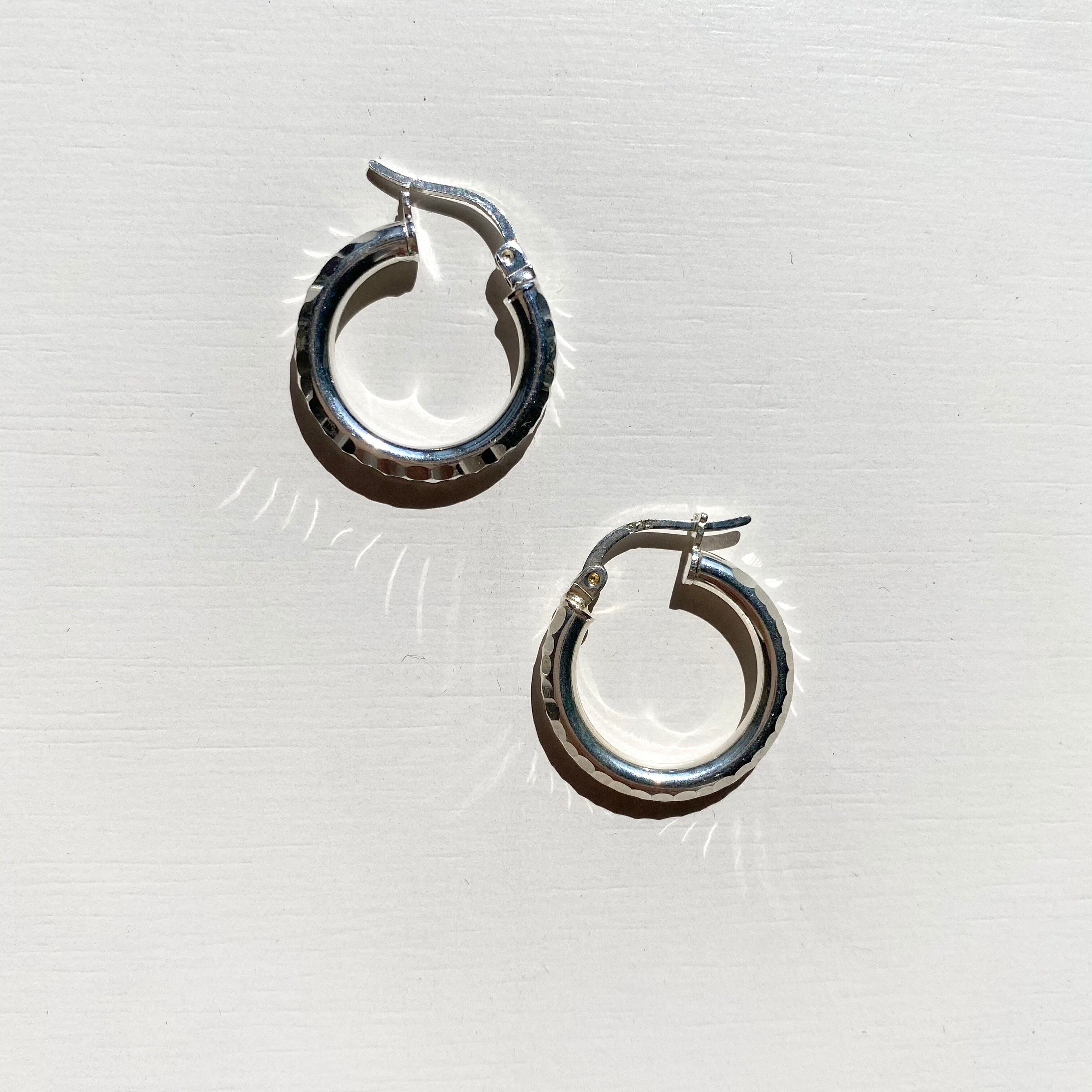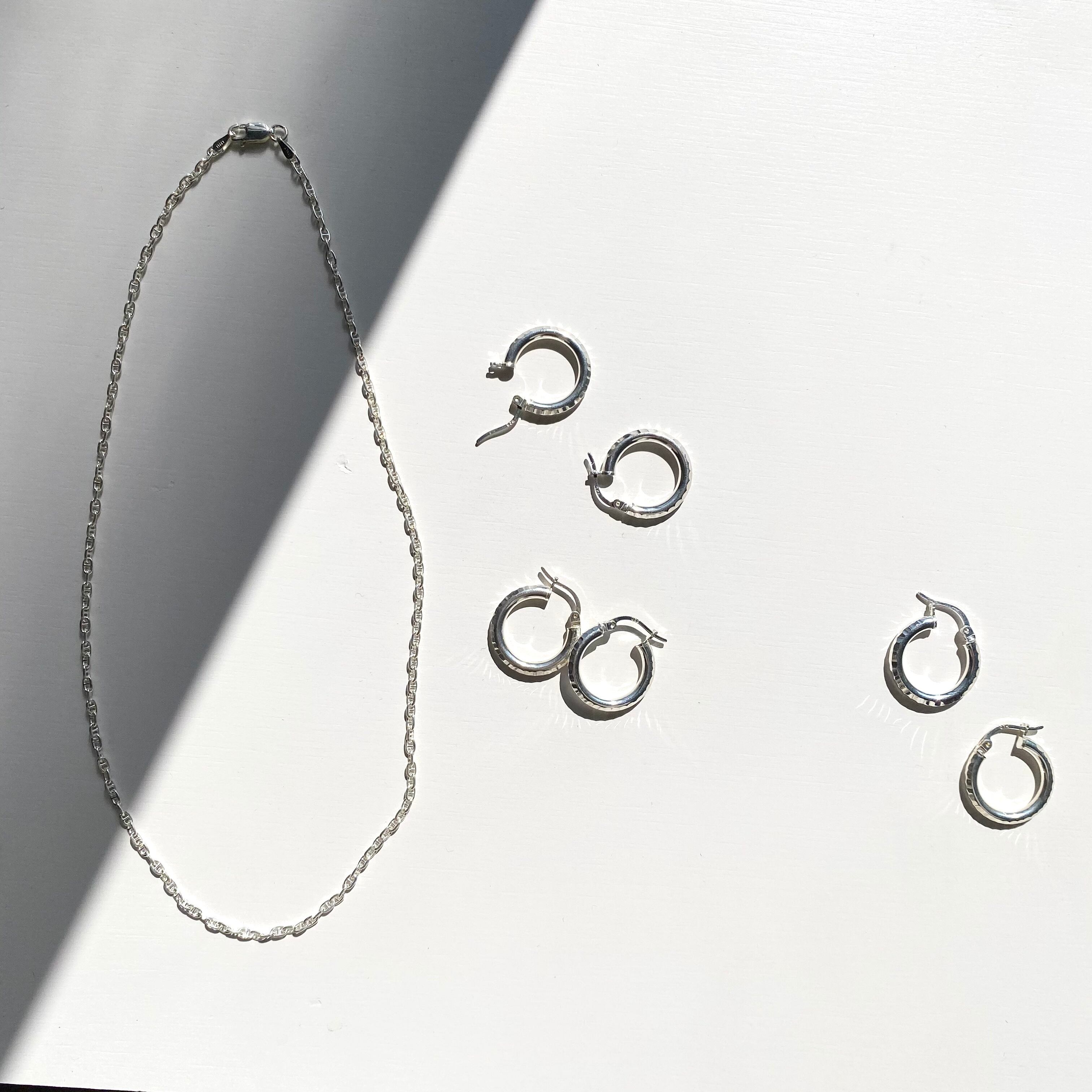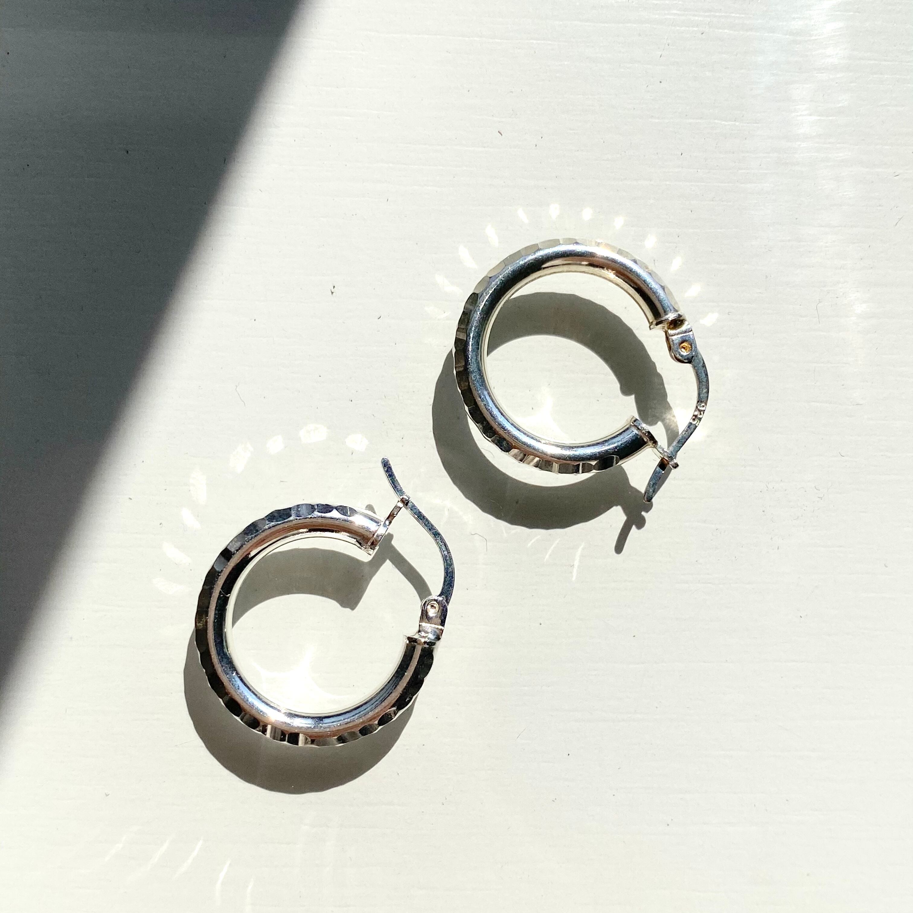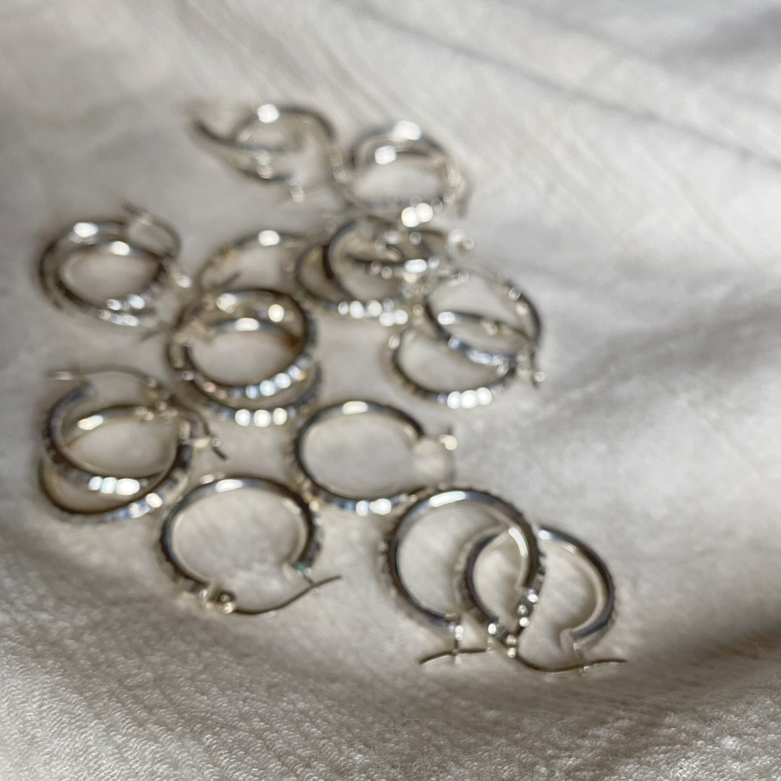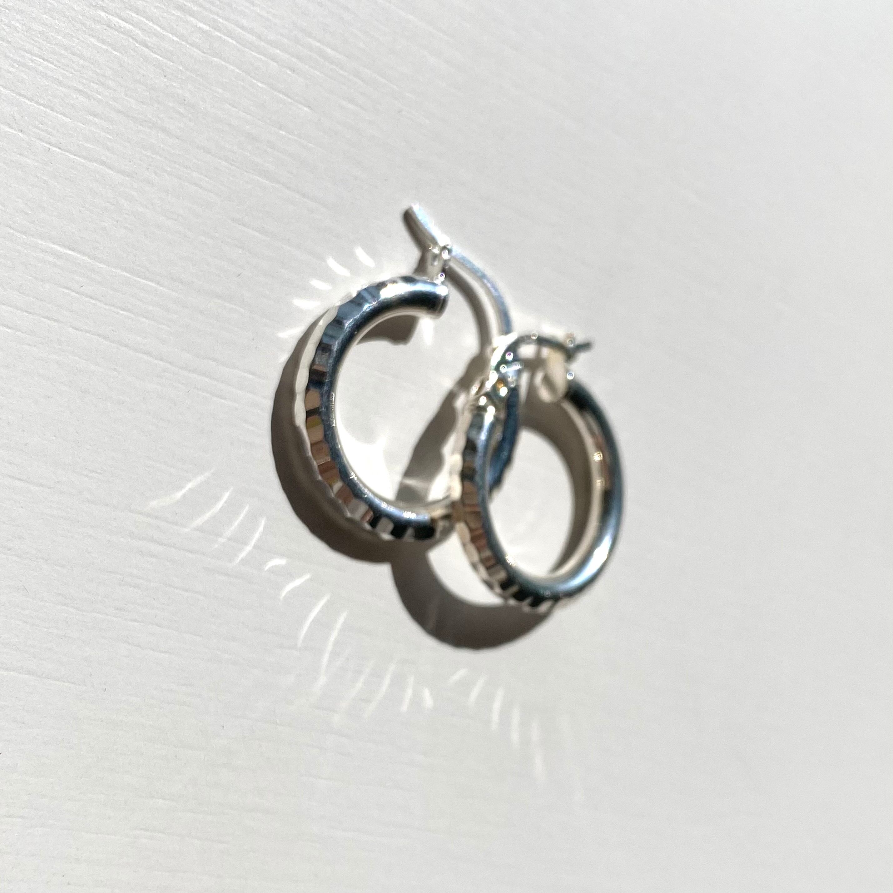 小さいのにキラキラと、シルバー自体の光で輝き存在感のある上品なピアスです。