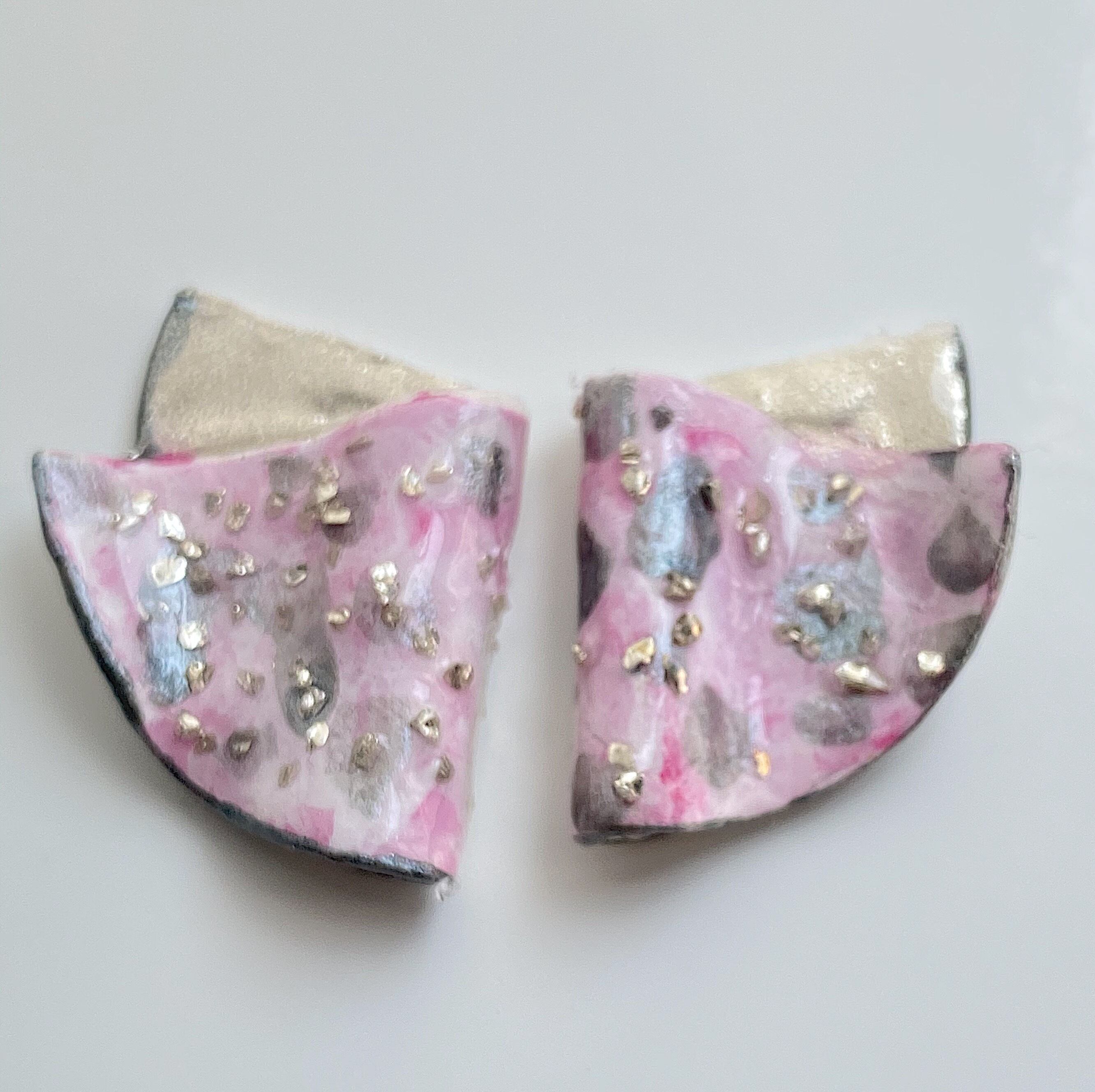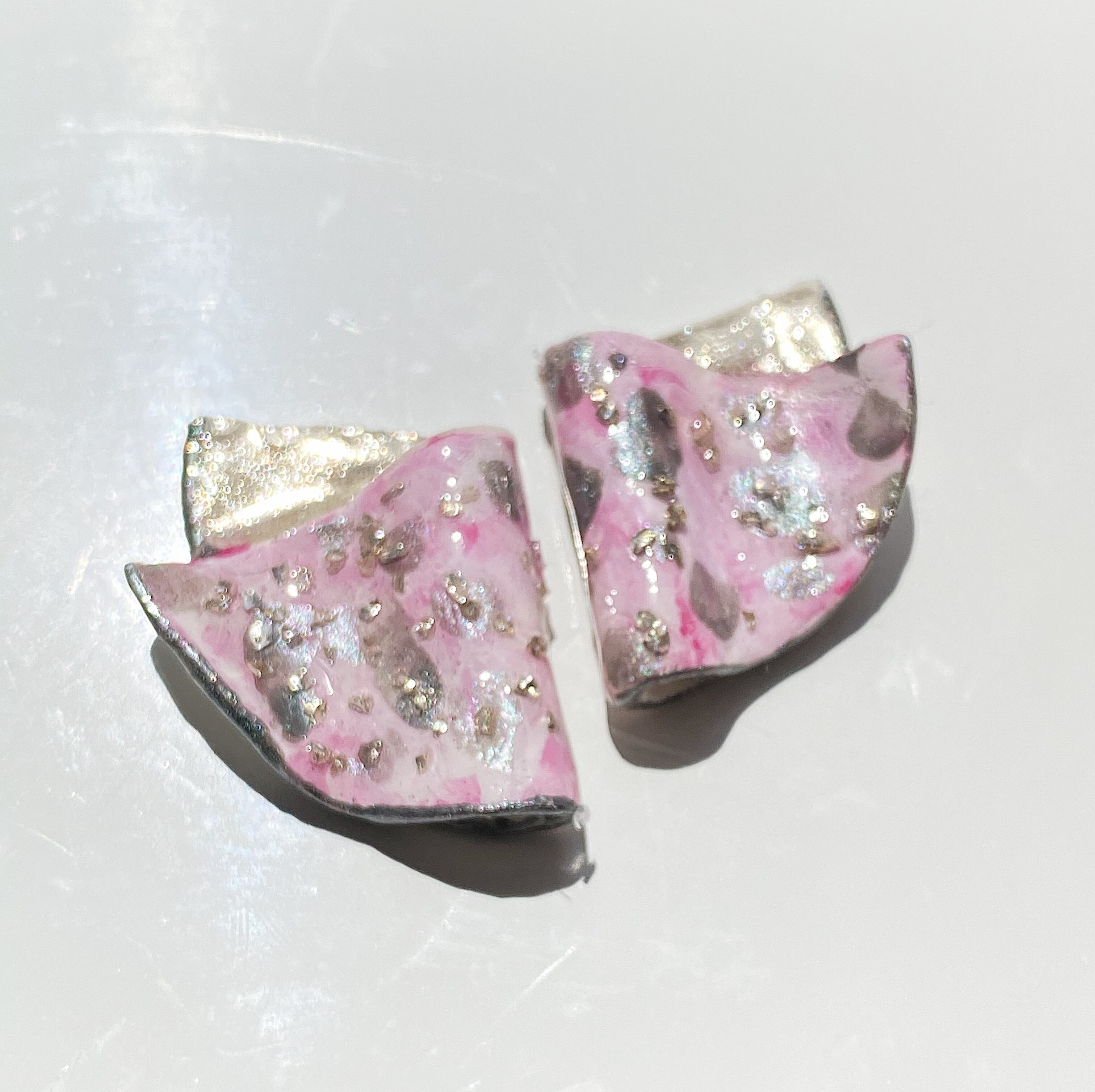 キラキラガラスとピンクの陶器風アクセサリー