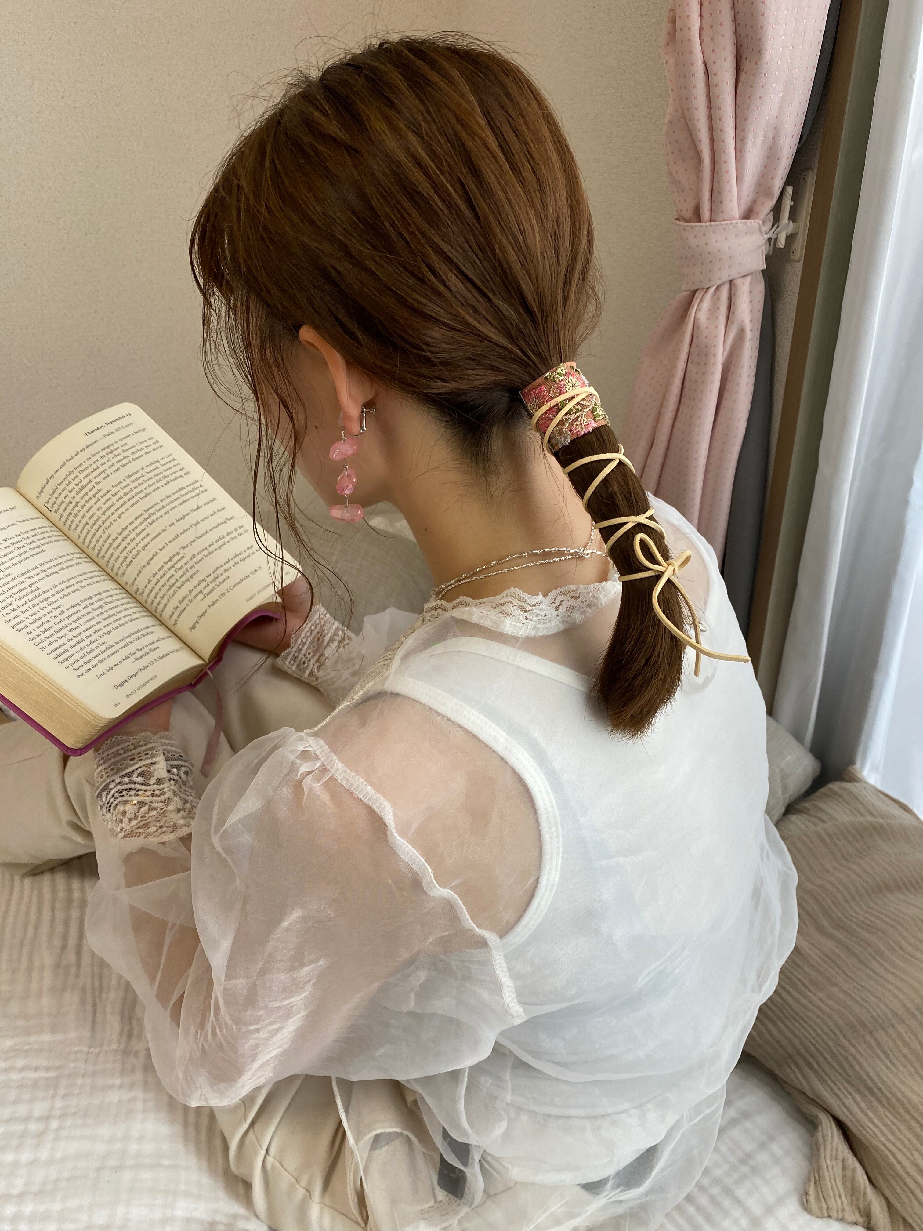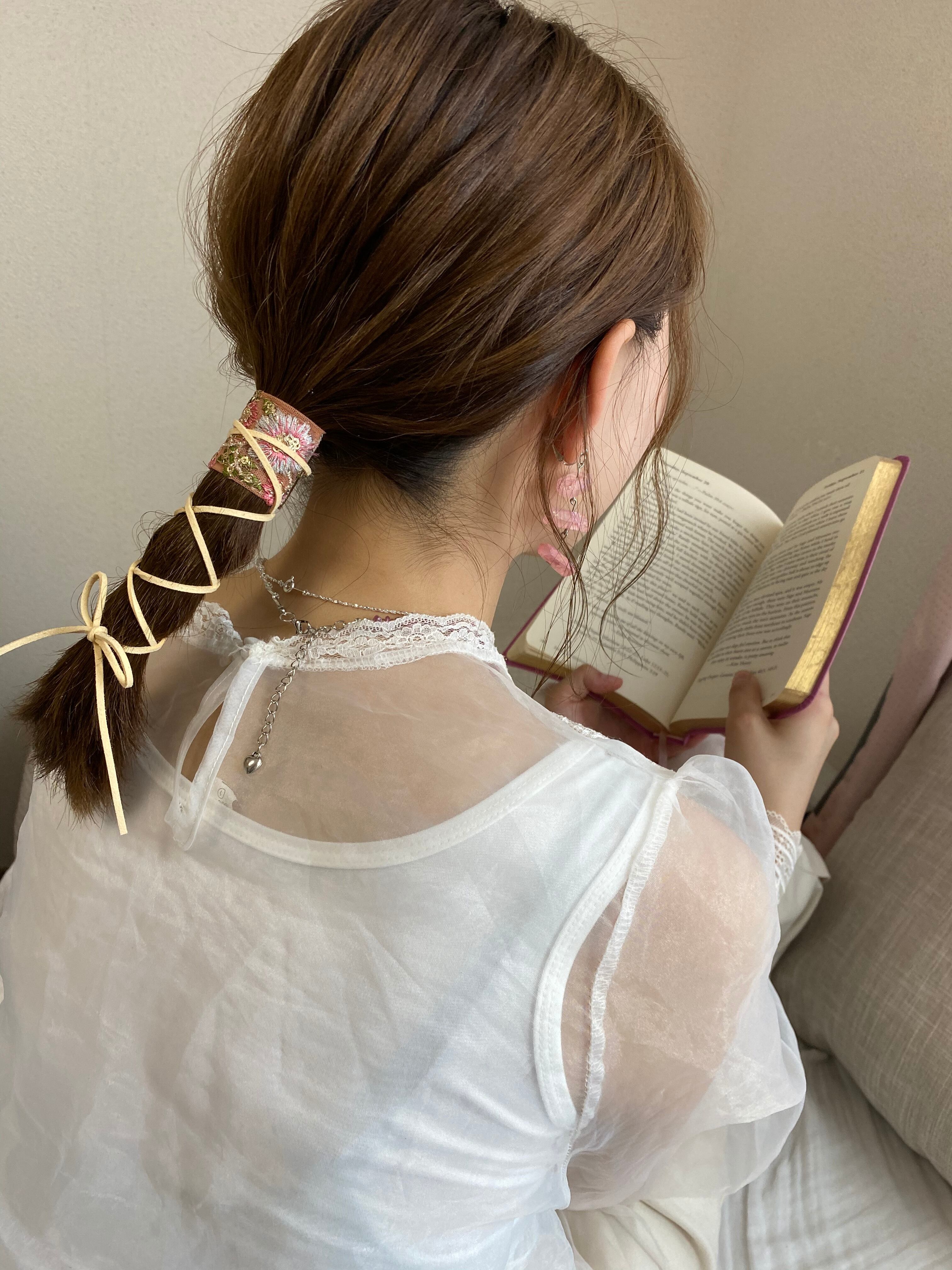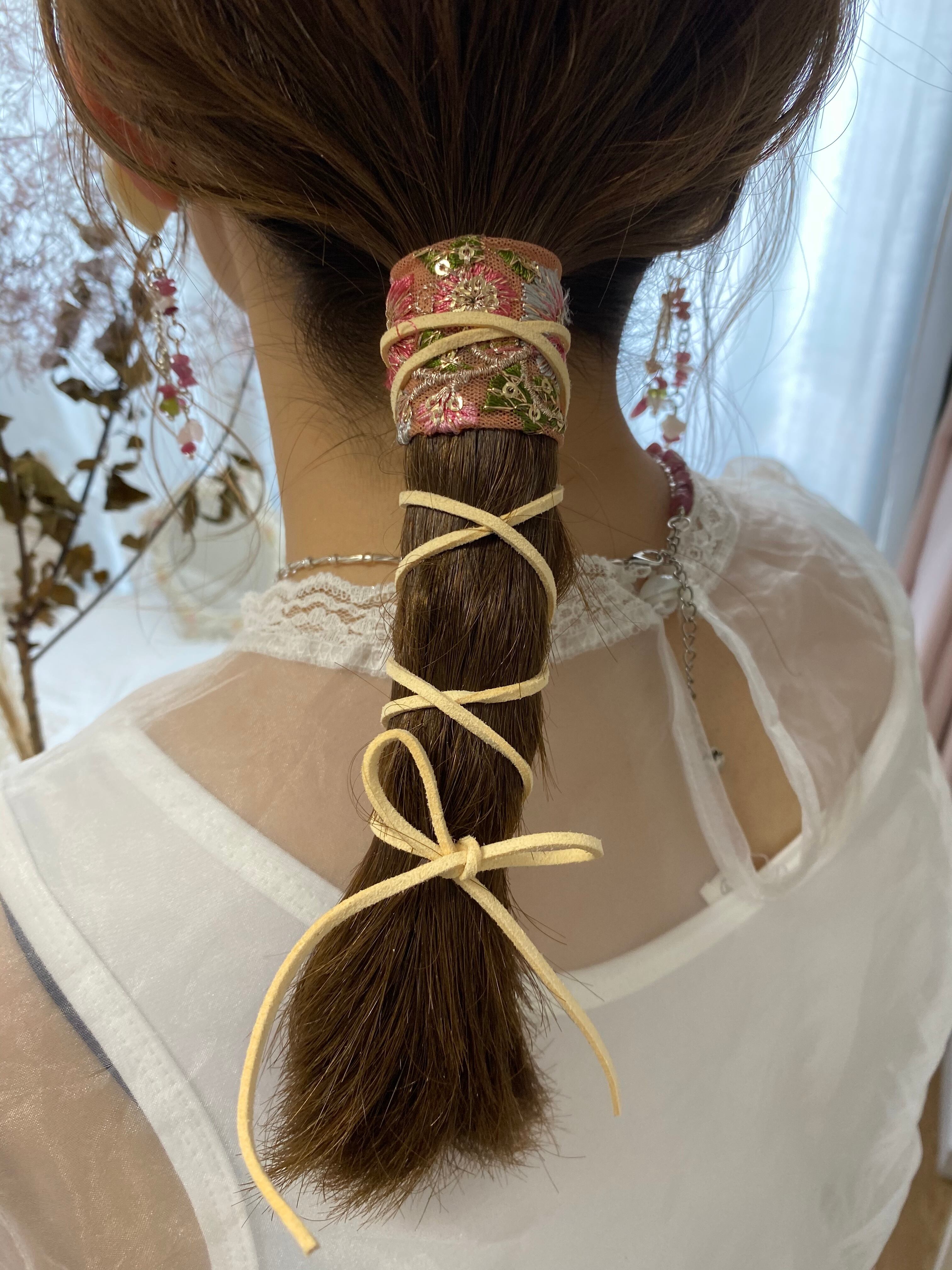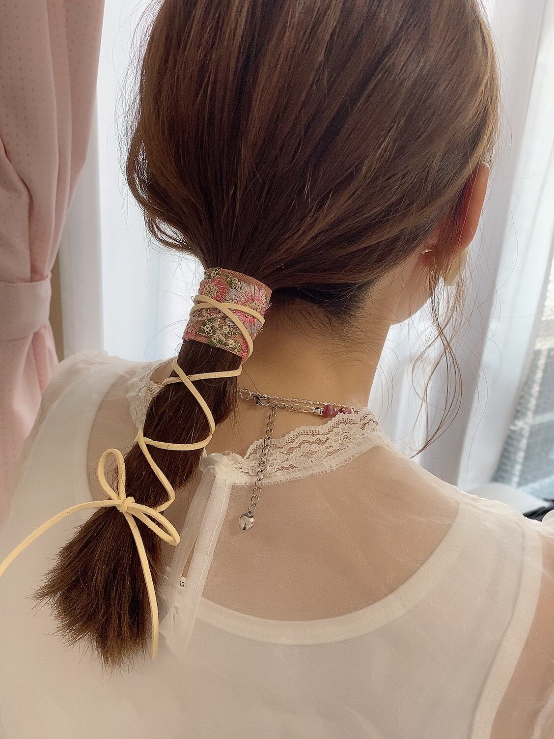 ピンク刺繍リボンの紐アレンジ3色セット1