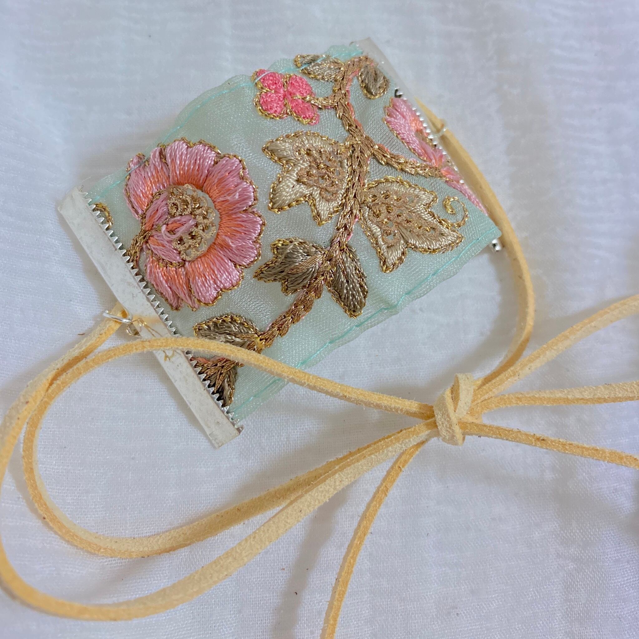 ブルー刺繍リボンの紐アレンジ4色セット2