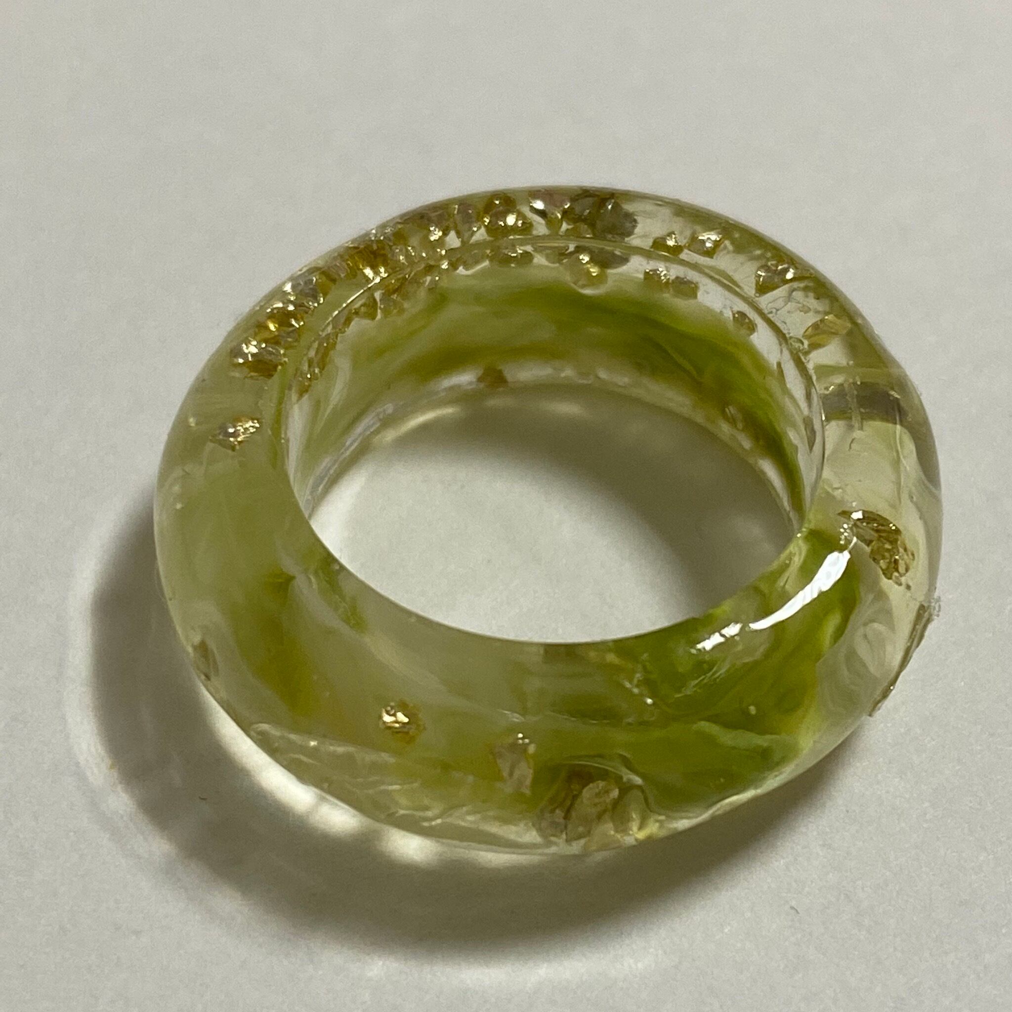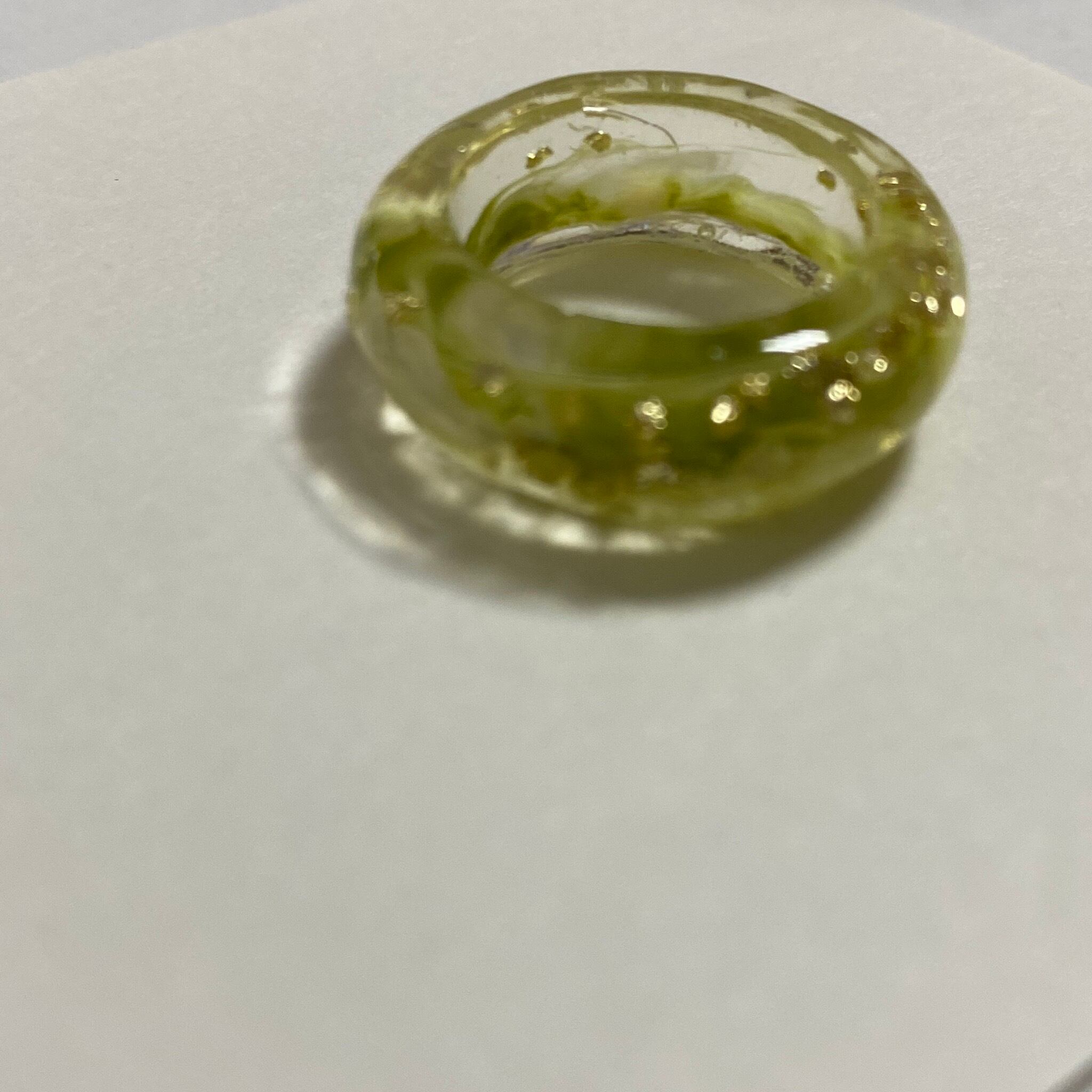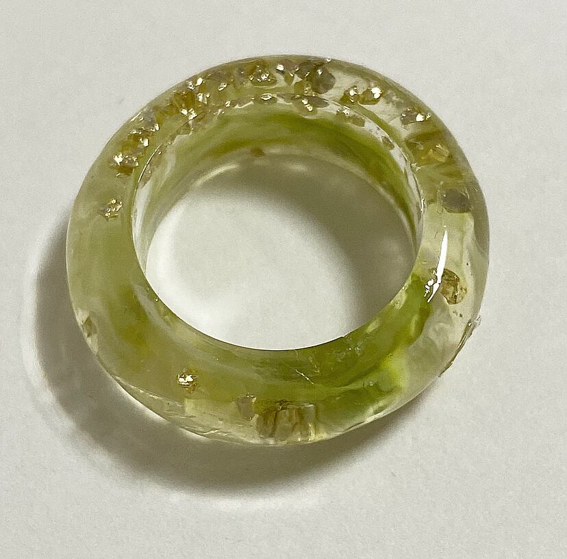 【オーダー品】ゴールドとカーキアイボリーのマーブルリング