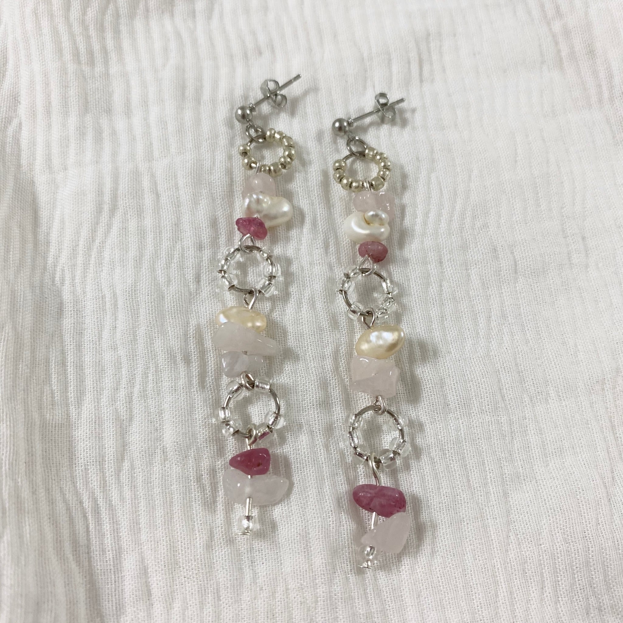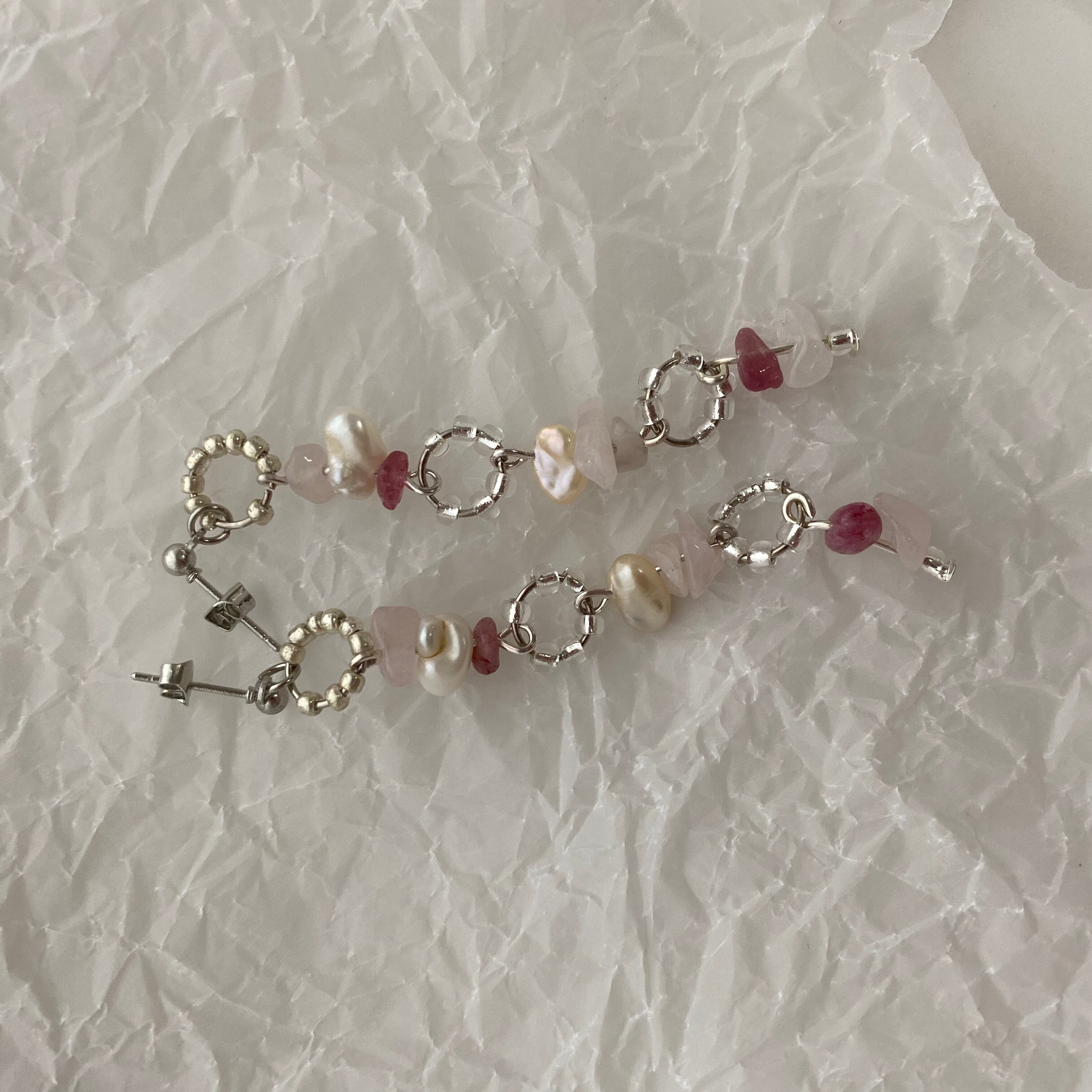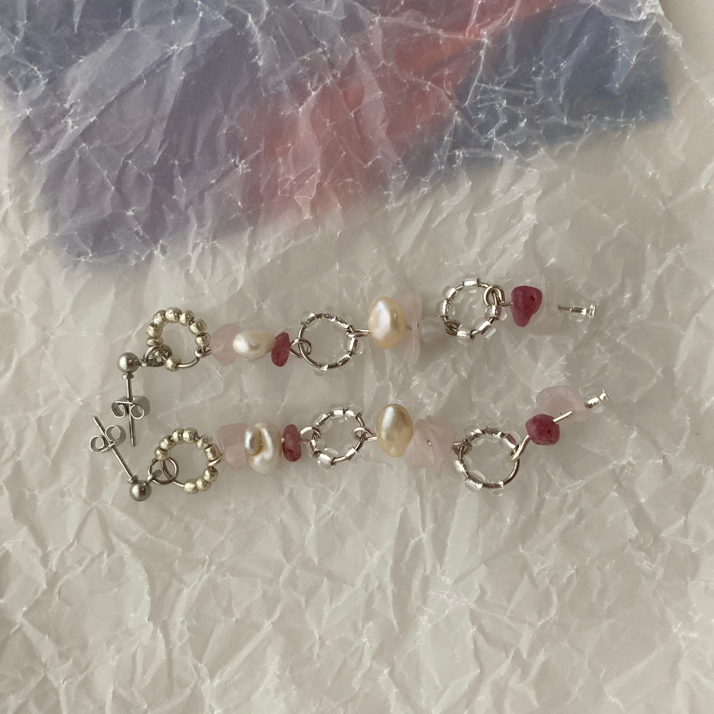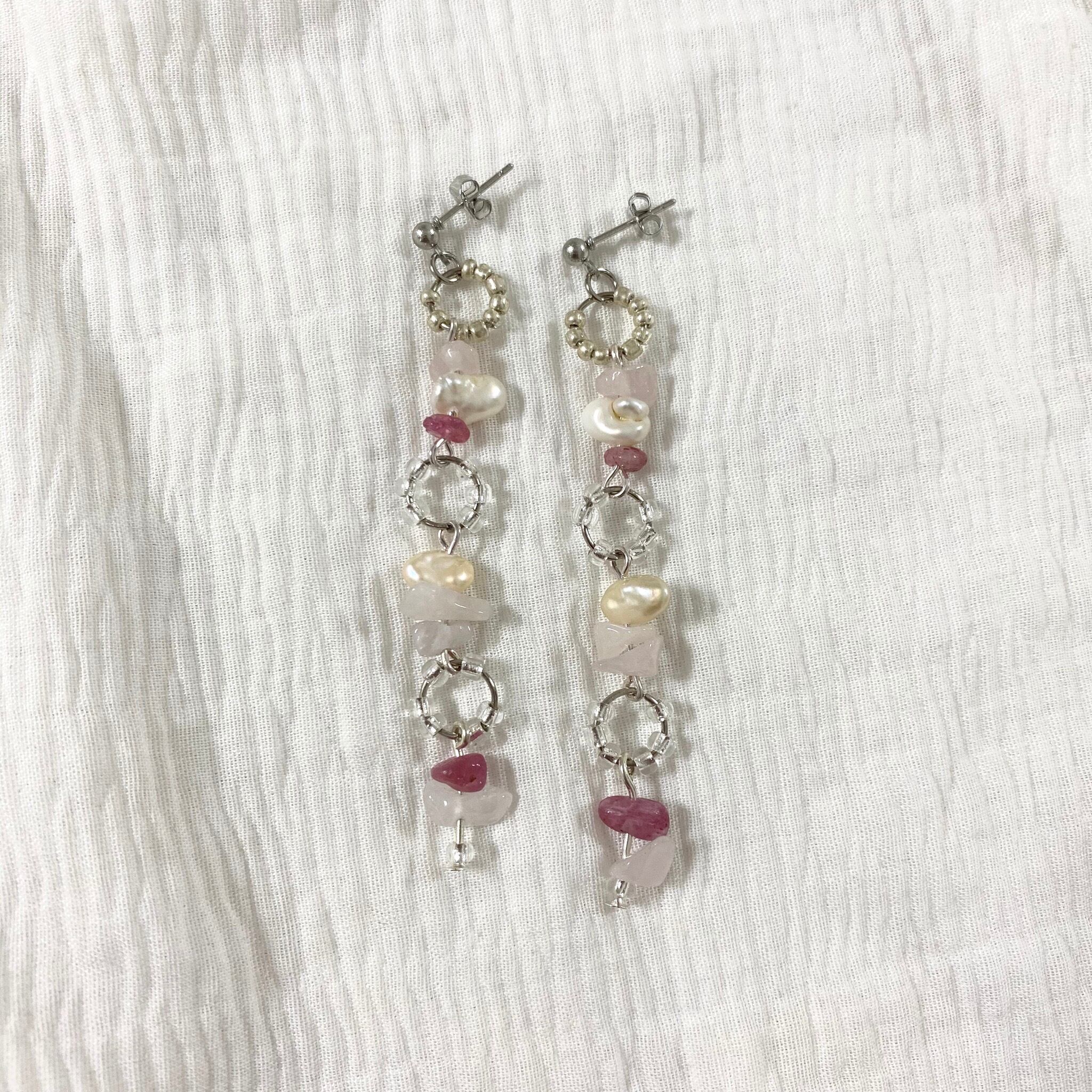 2種のパールと2種の天然石ピアス