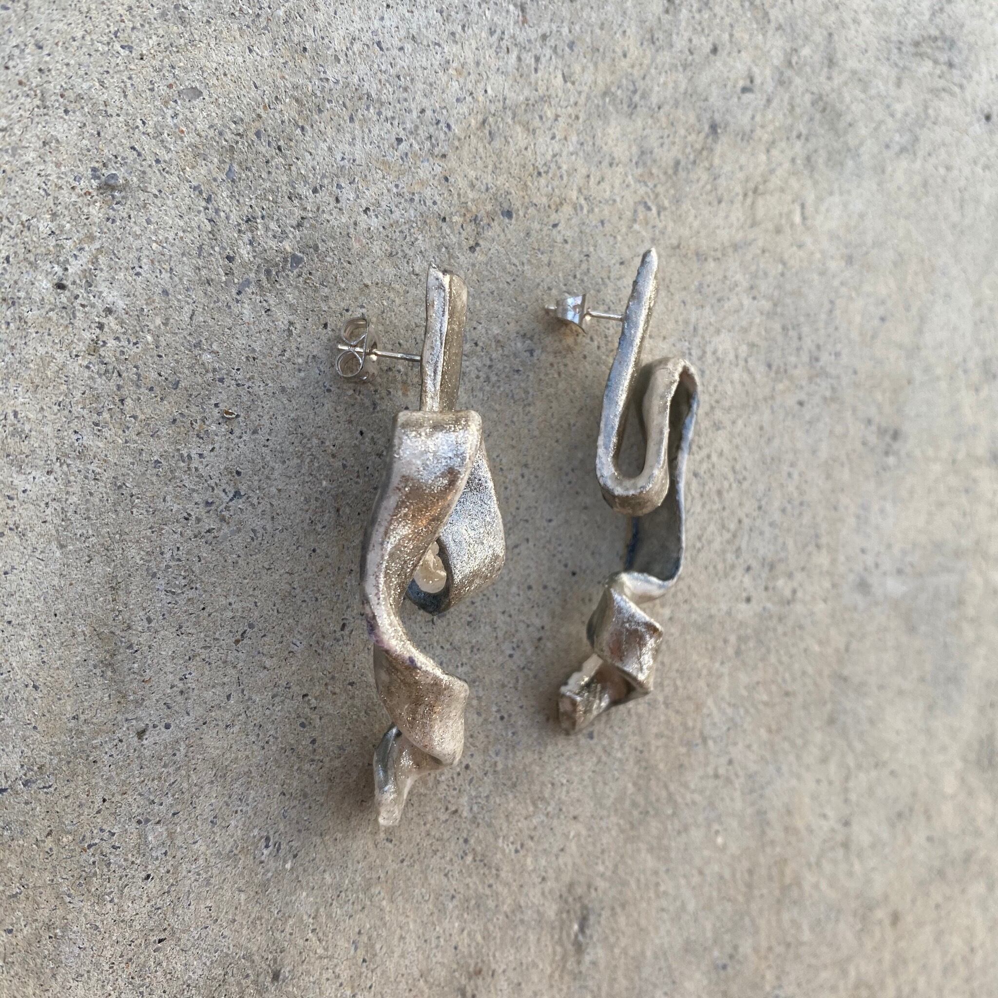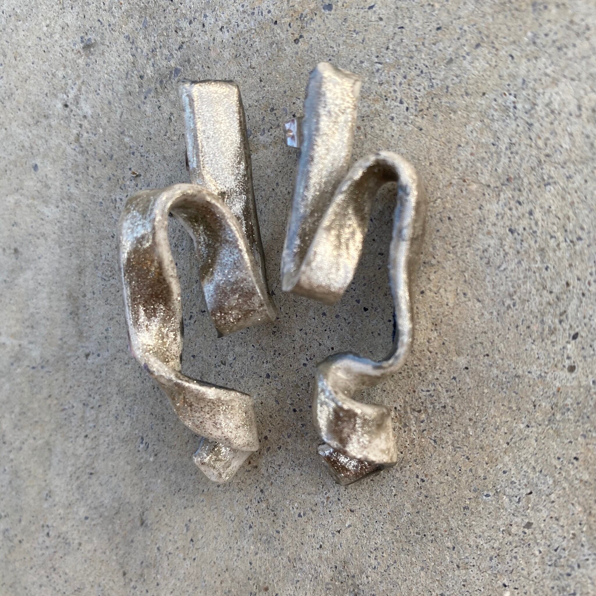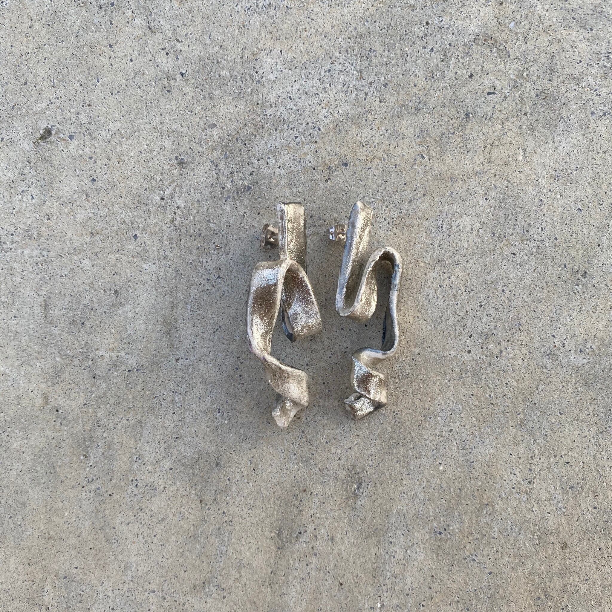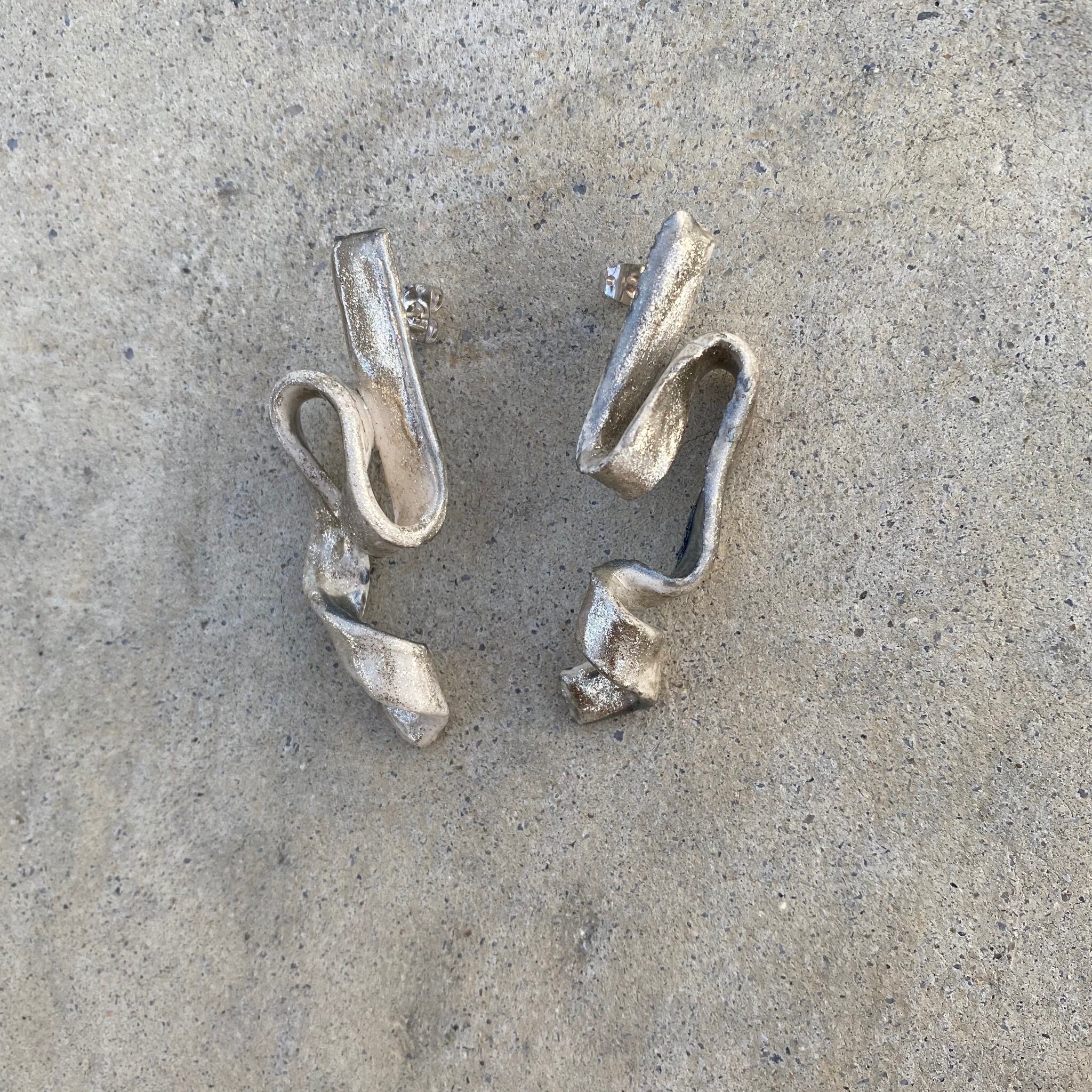 【取り置き】陶器風シルバーリボンイヤリング