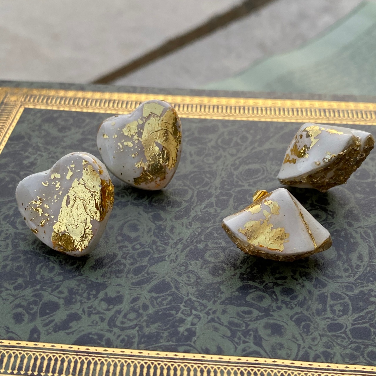 ツヤツヤっとした光沢と金箔とガラス