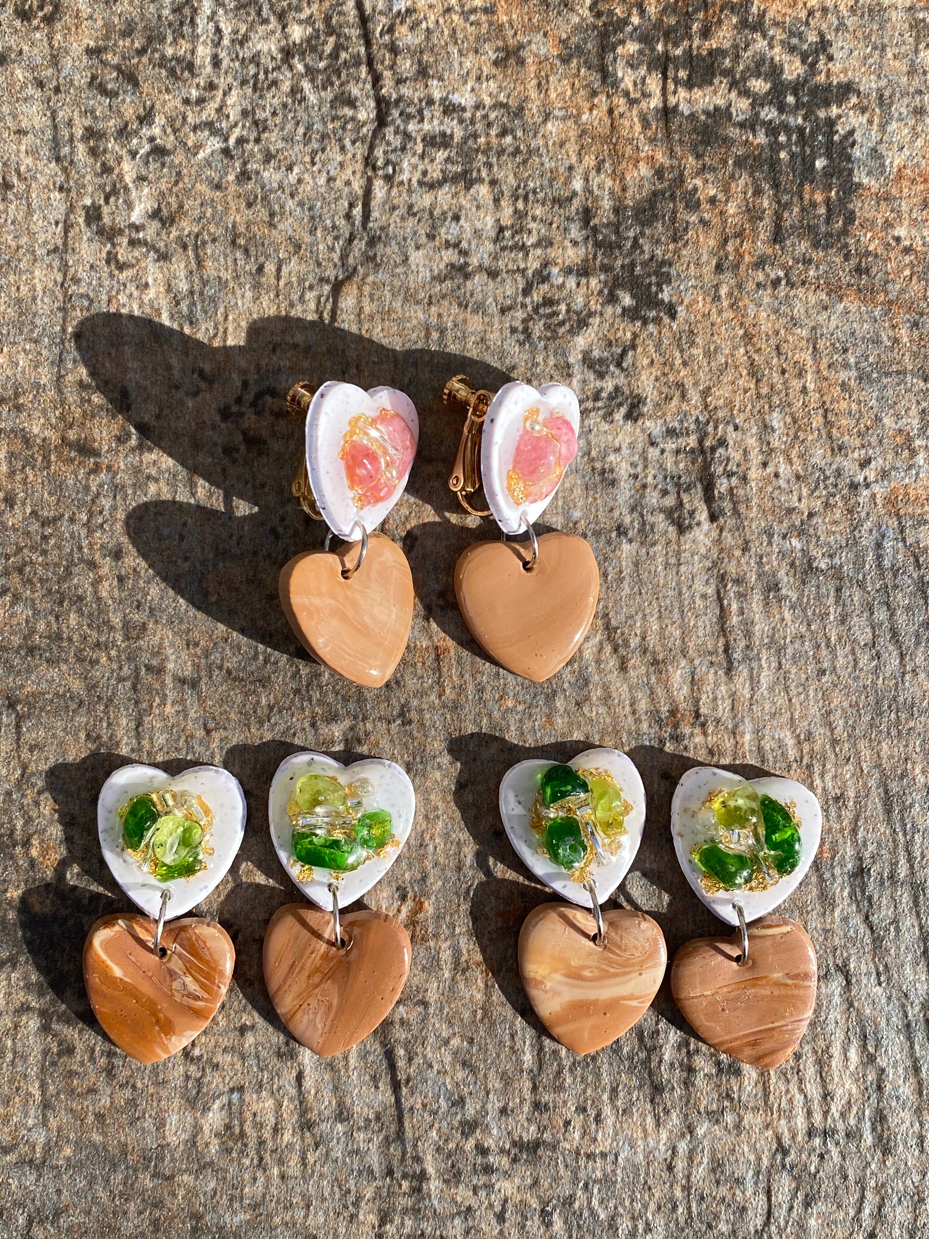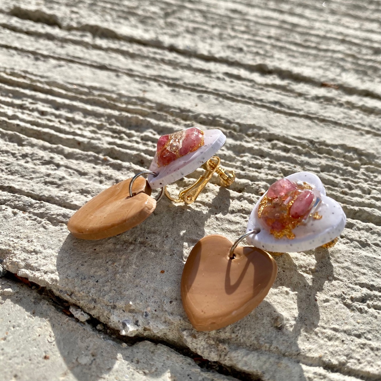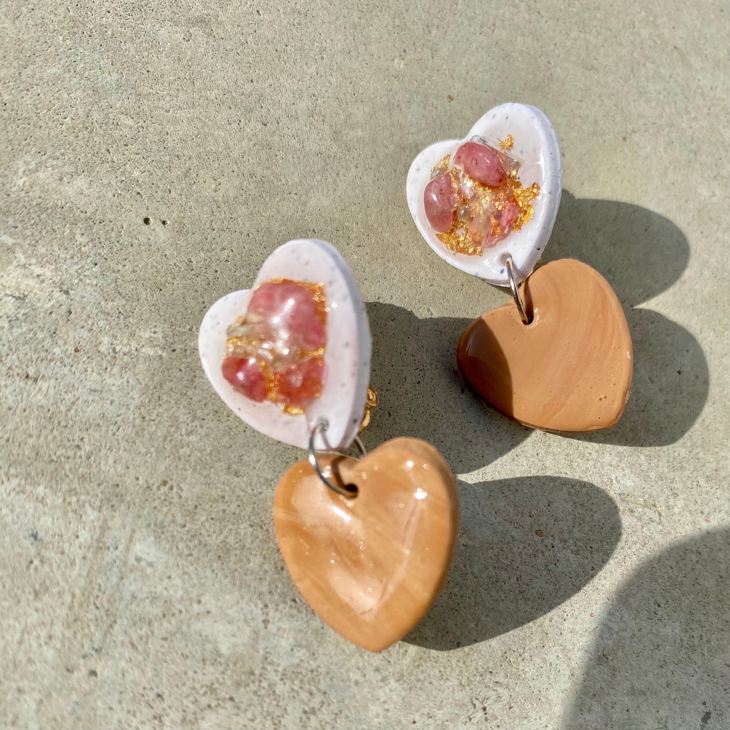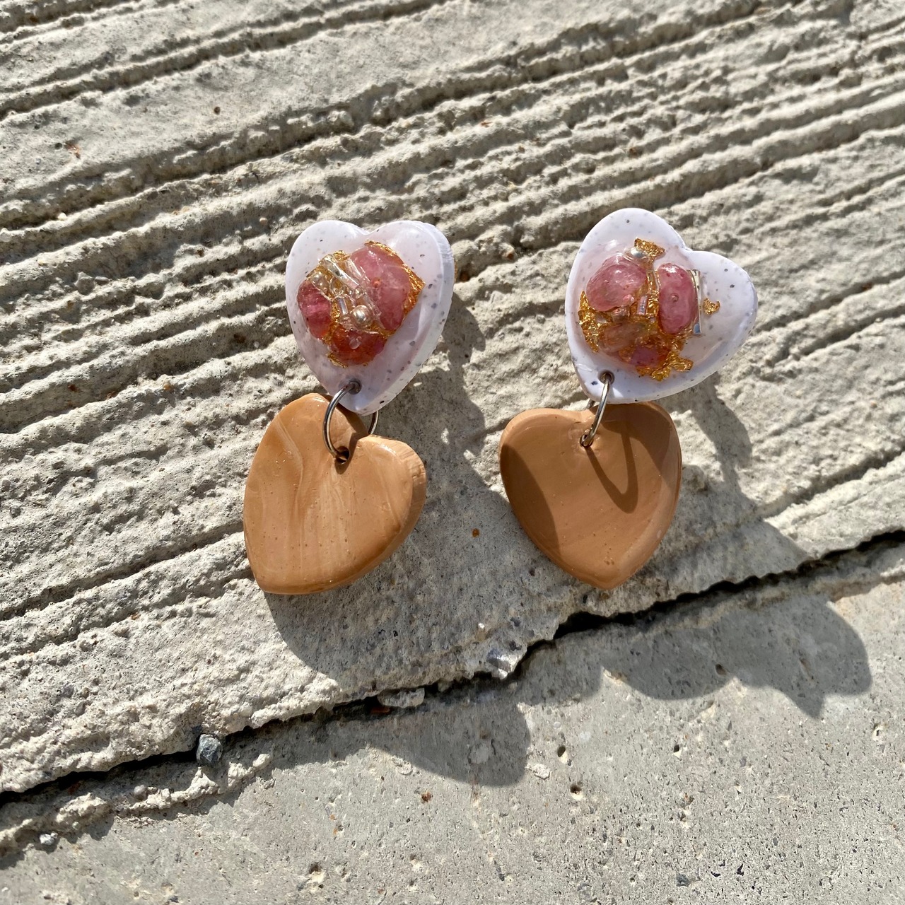 ハンドメイドのハートのビーズを2つ組み合わせ、
