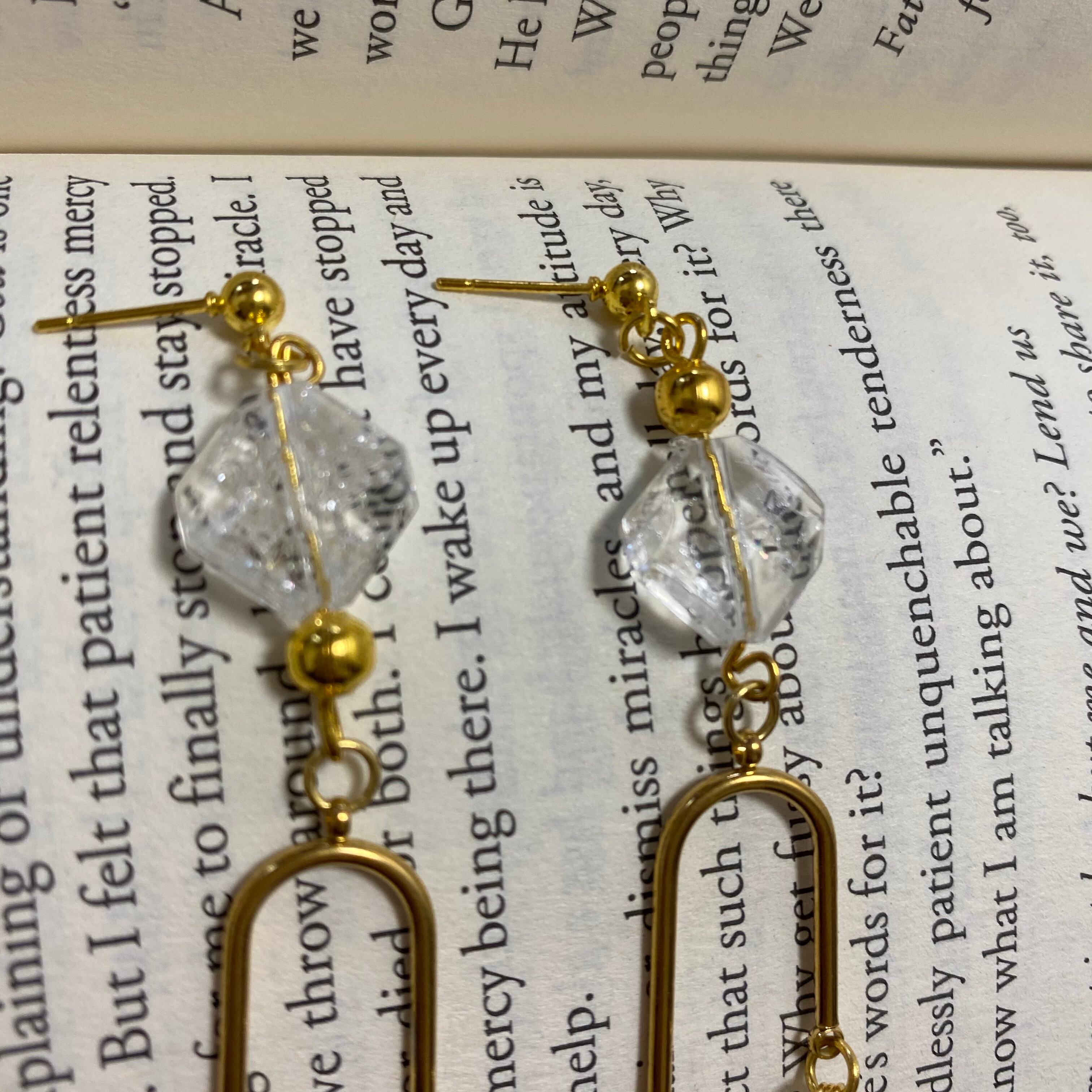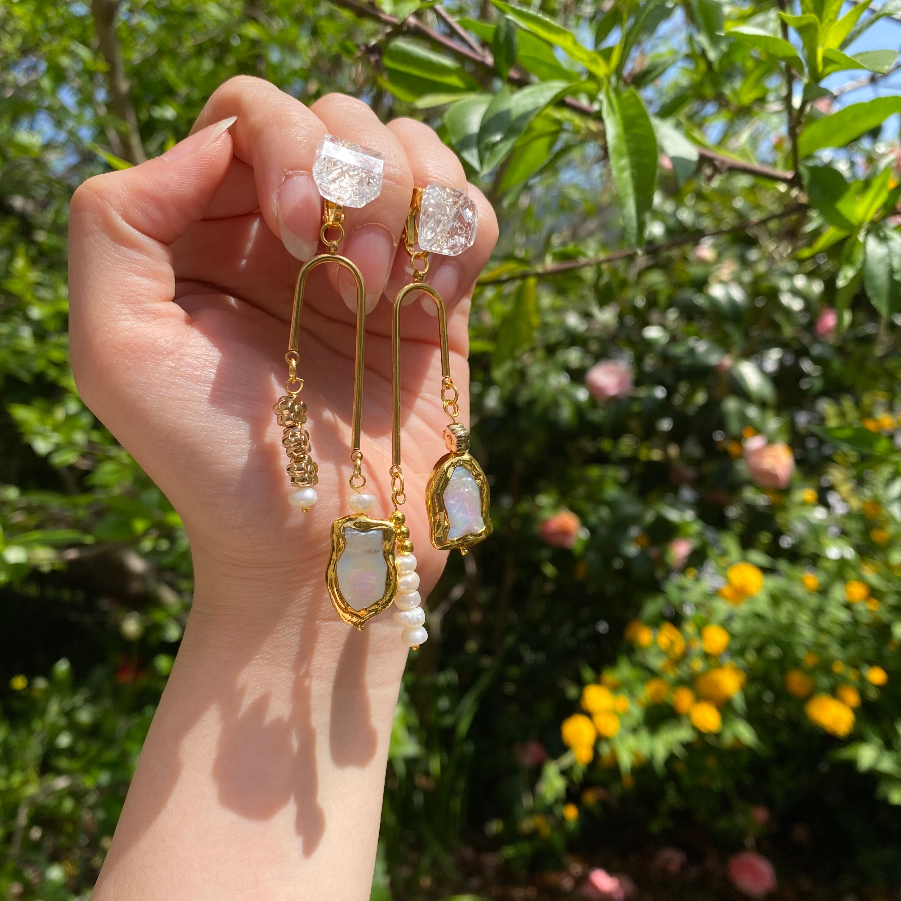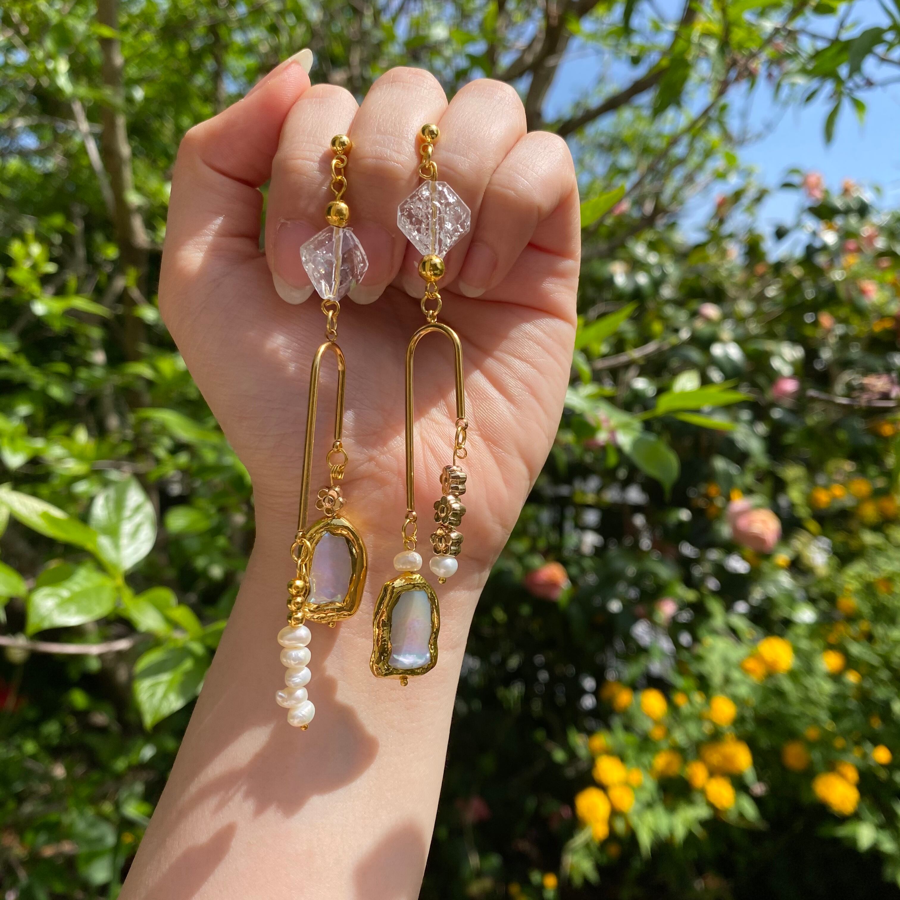 片耳だけを見ても長さの違うパーツが揺れるように