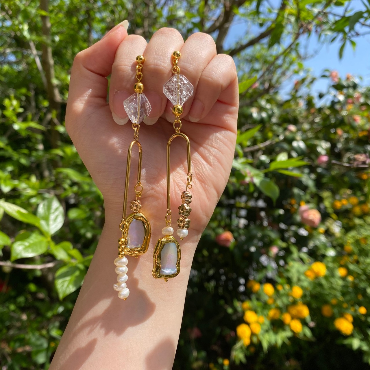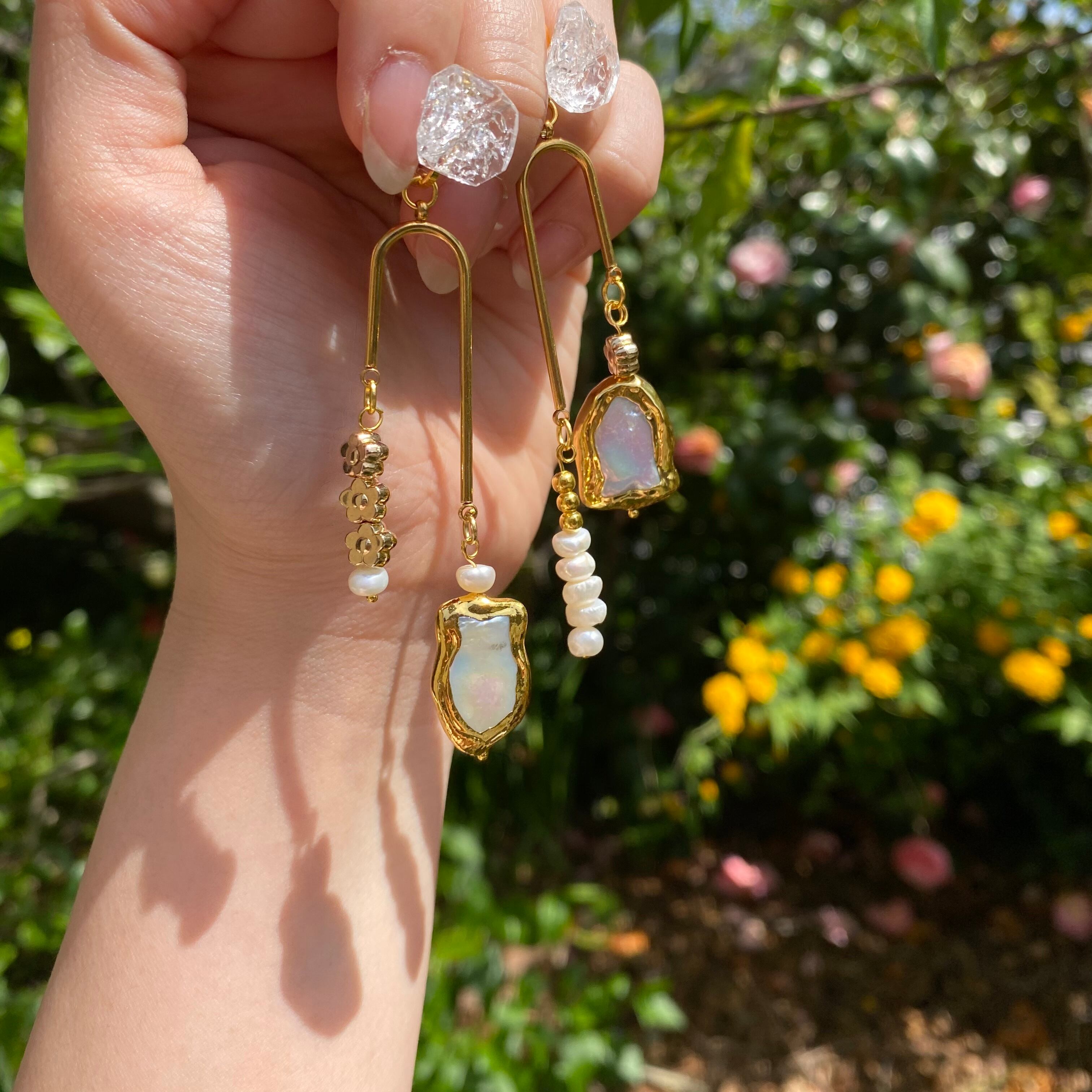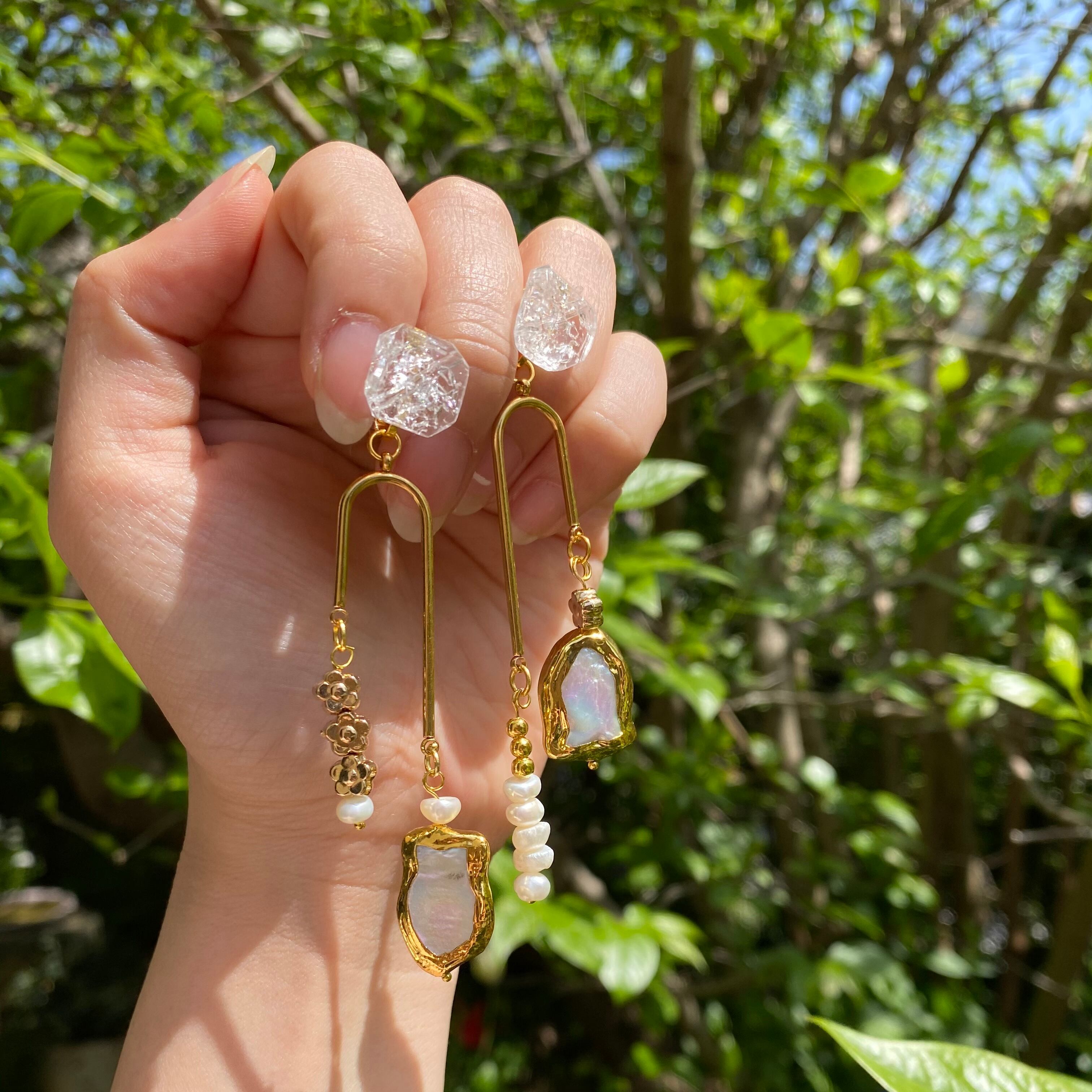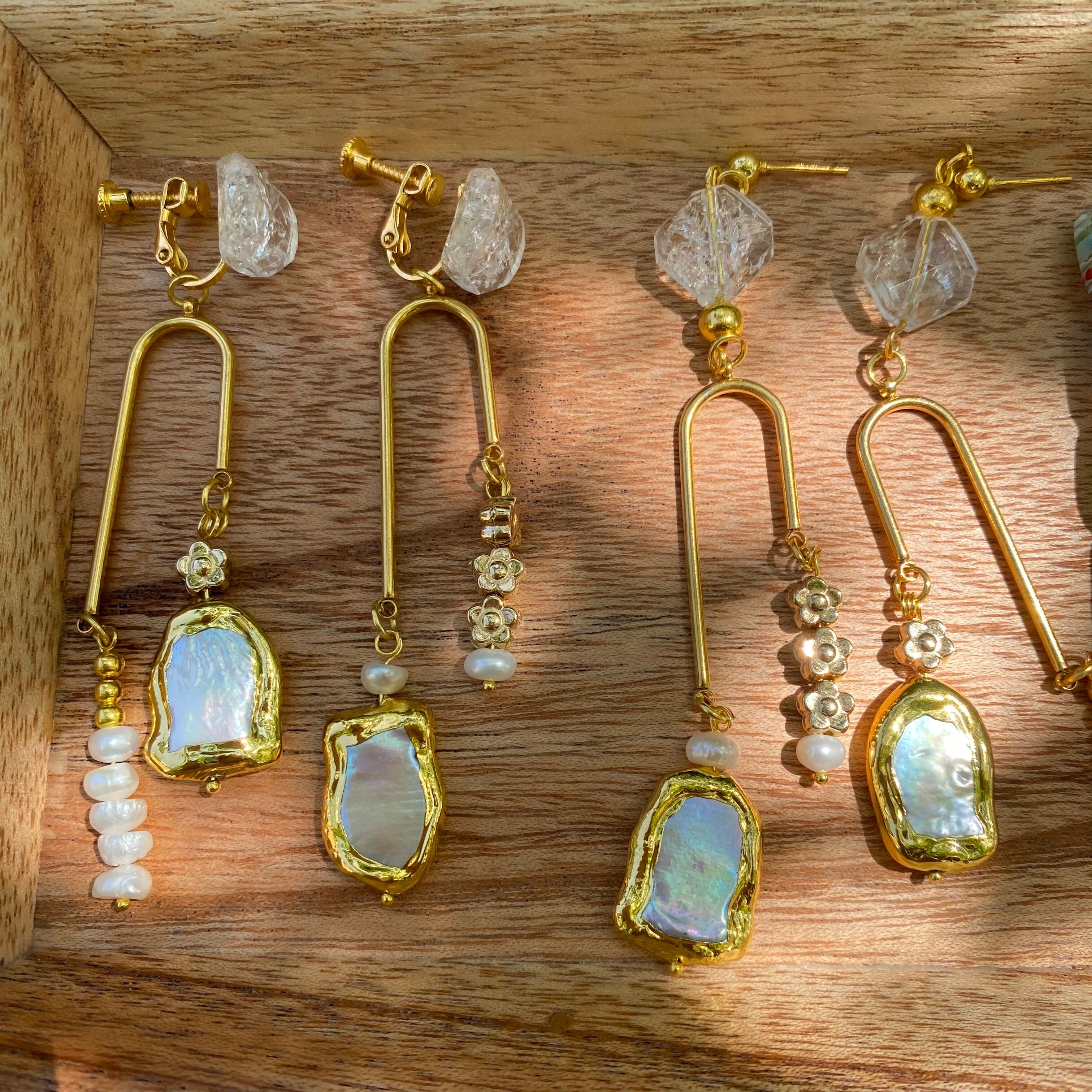ゴールドアシメの淡水パールアクセサリー