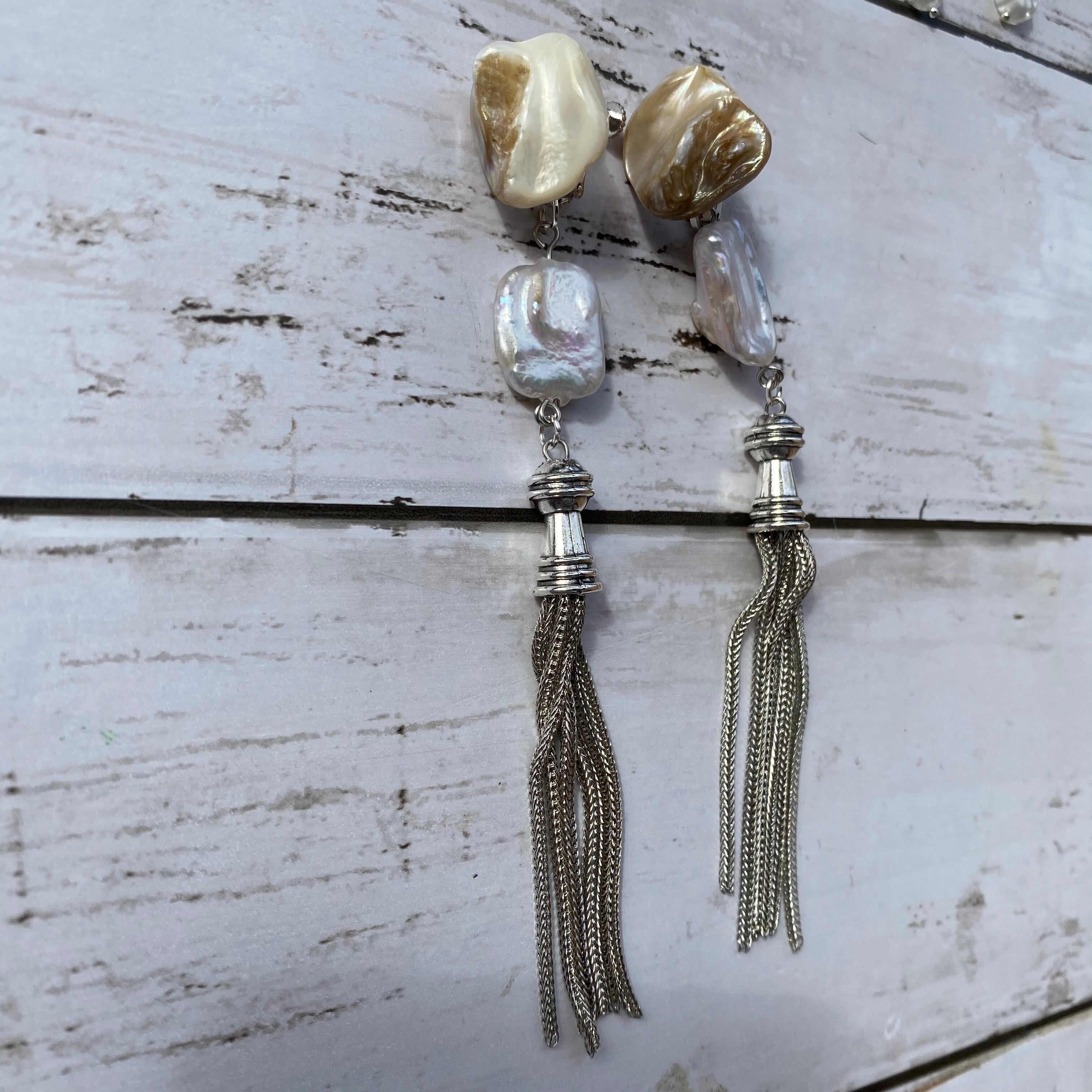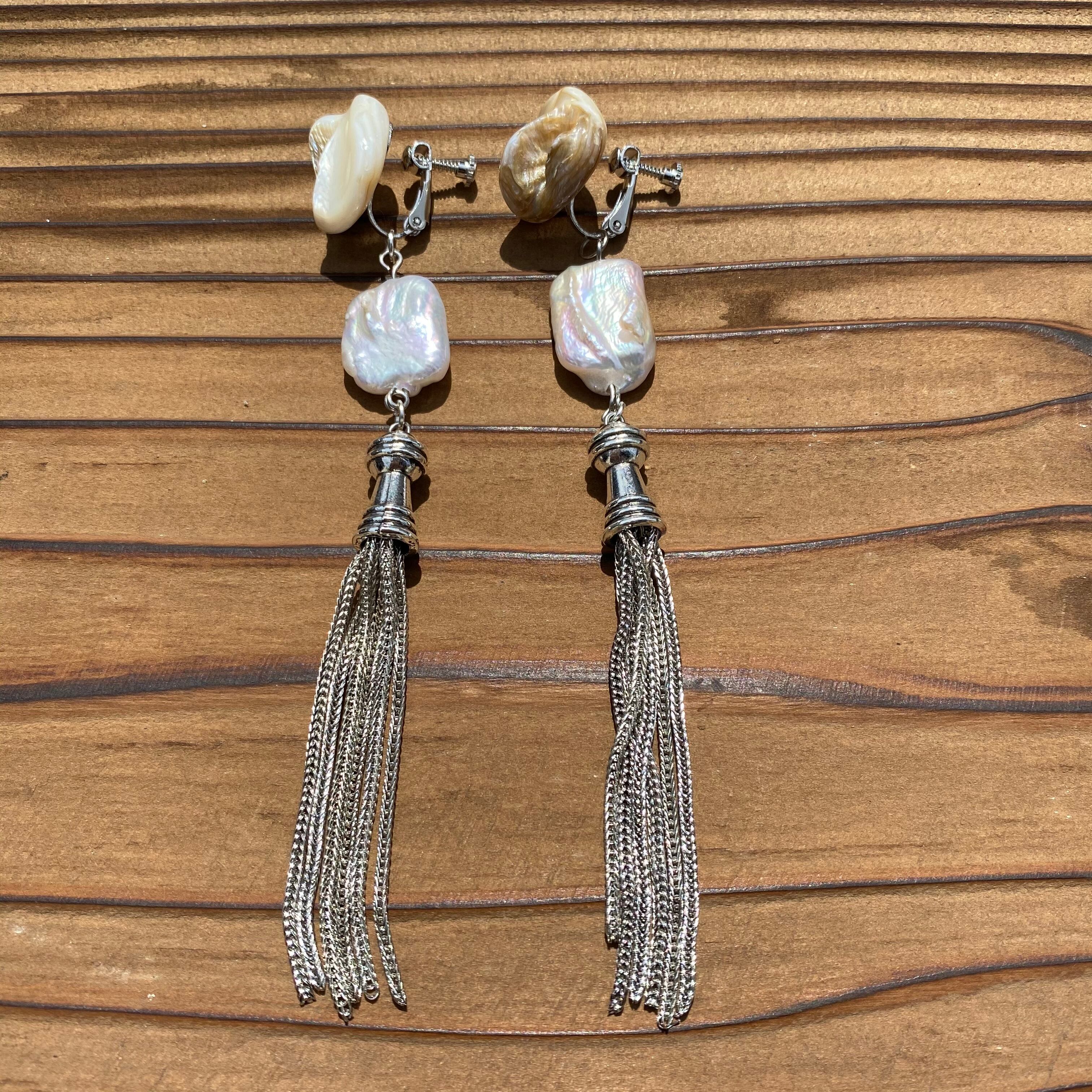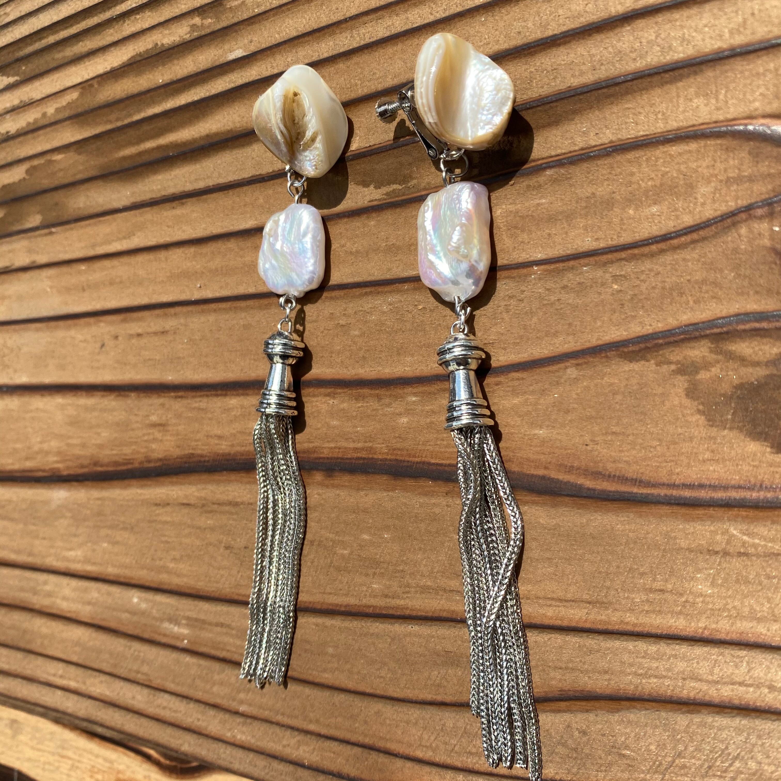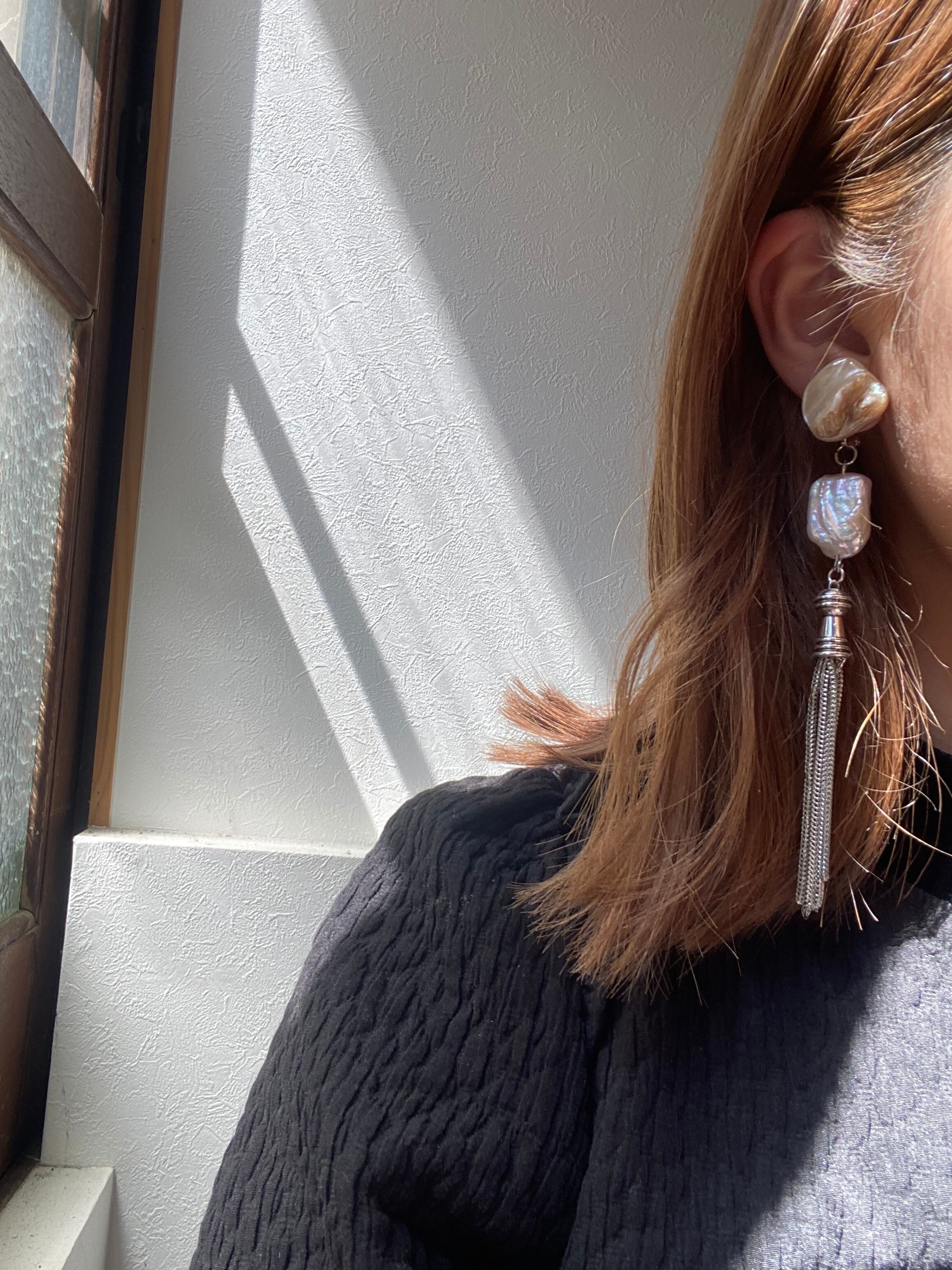 silver tassel & Perl イヤリング
