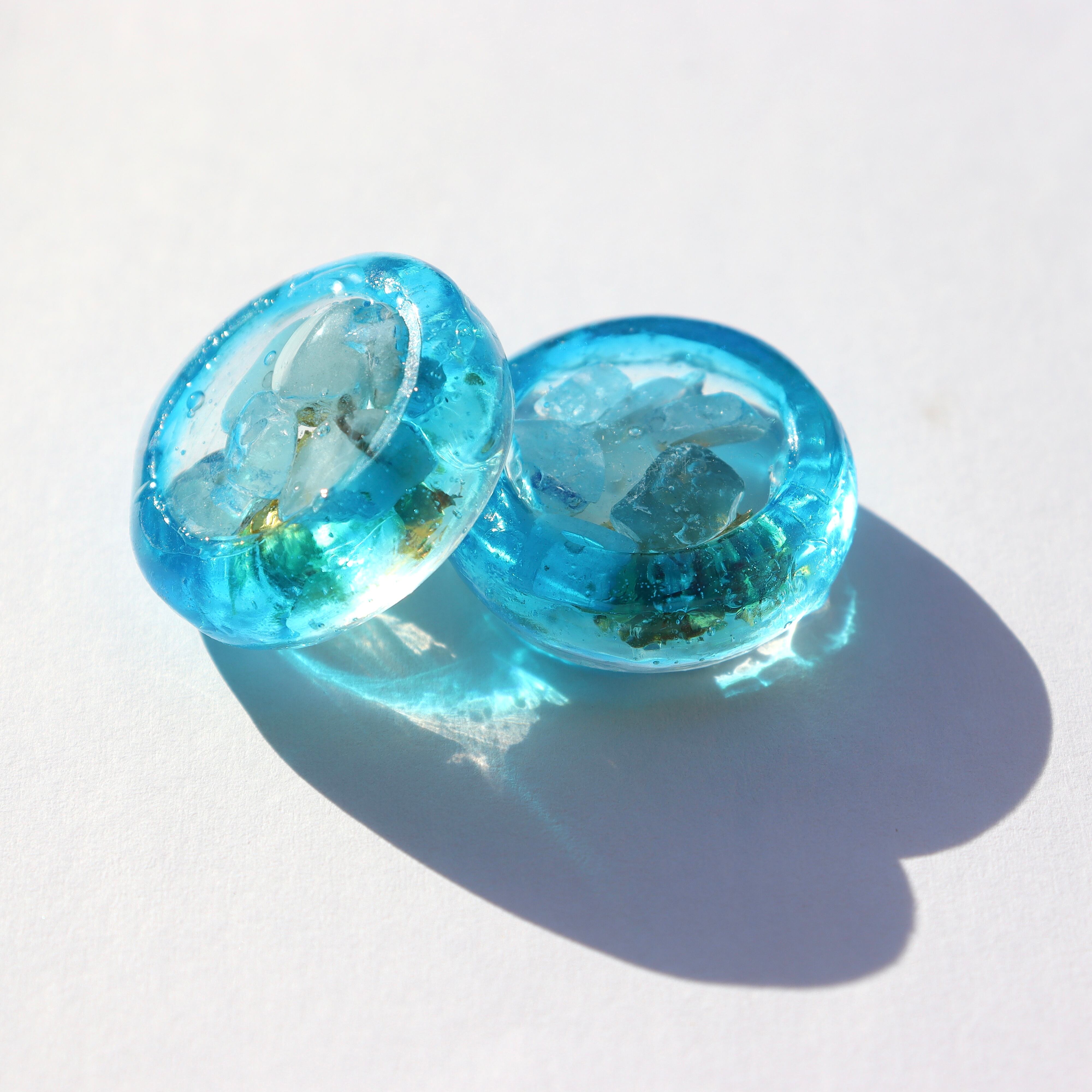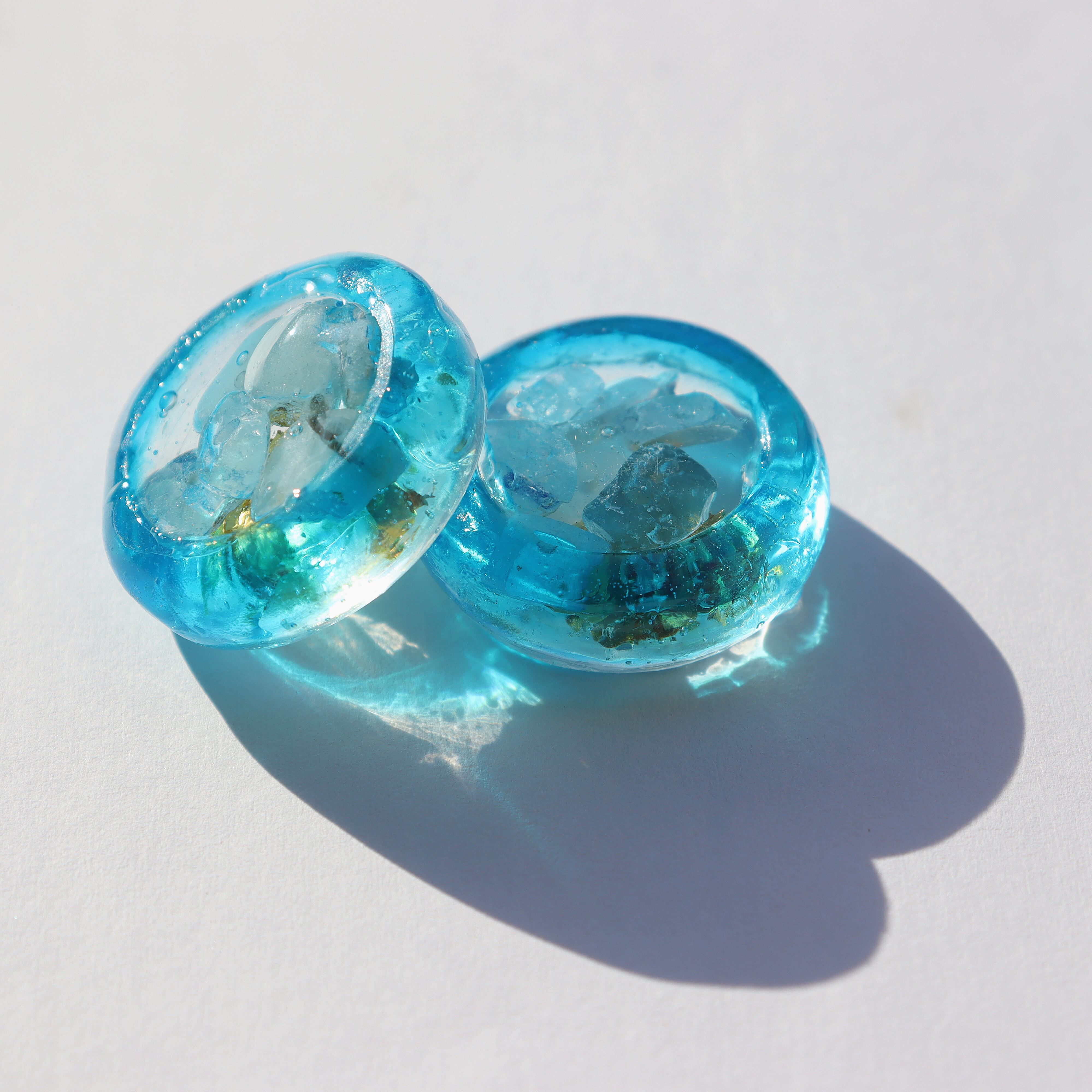 金箔と柔らかな水色の天然石をたっぷり