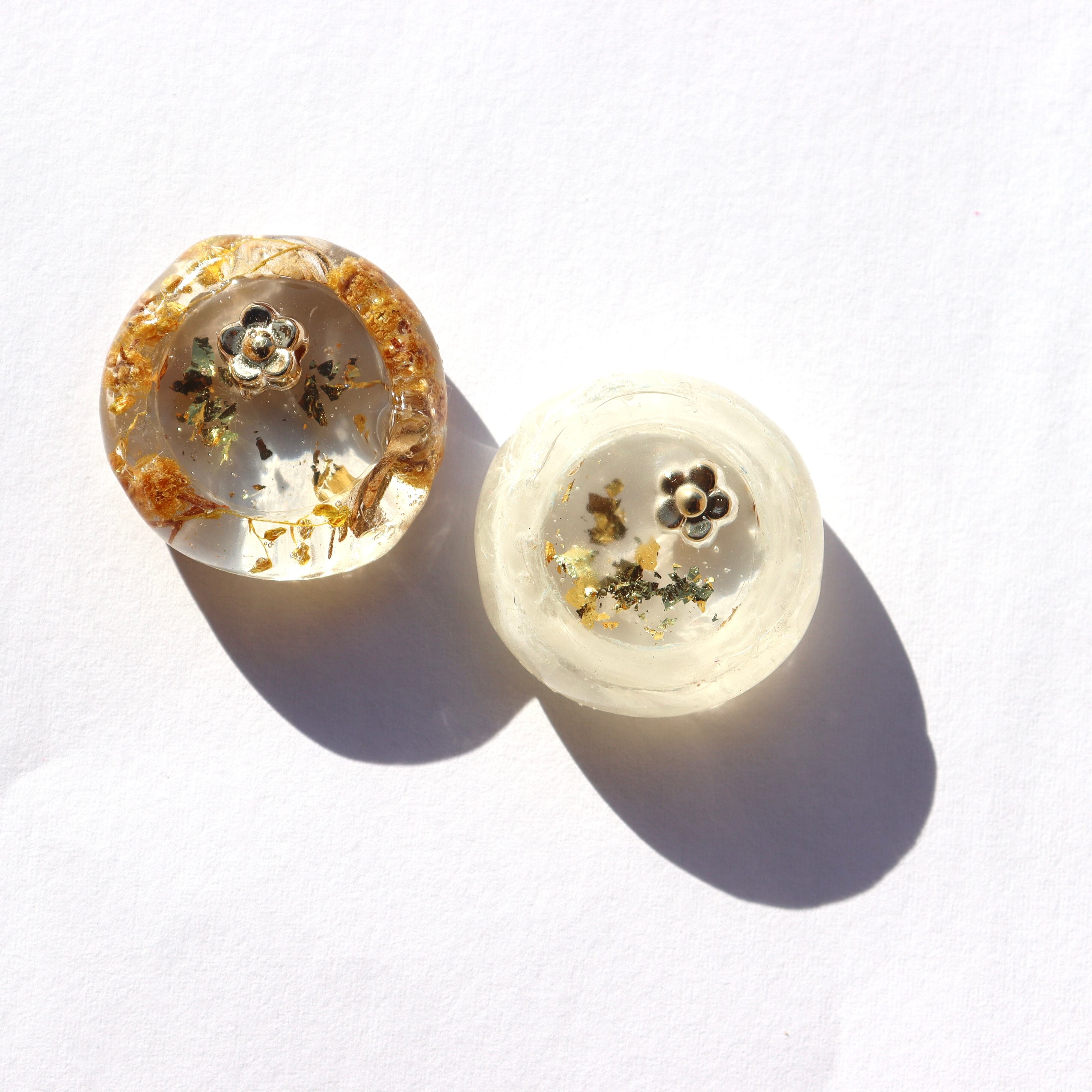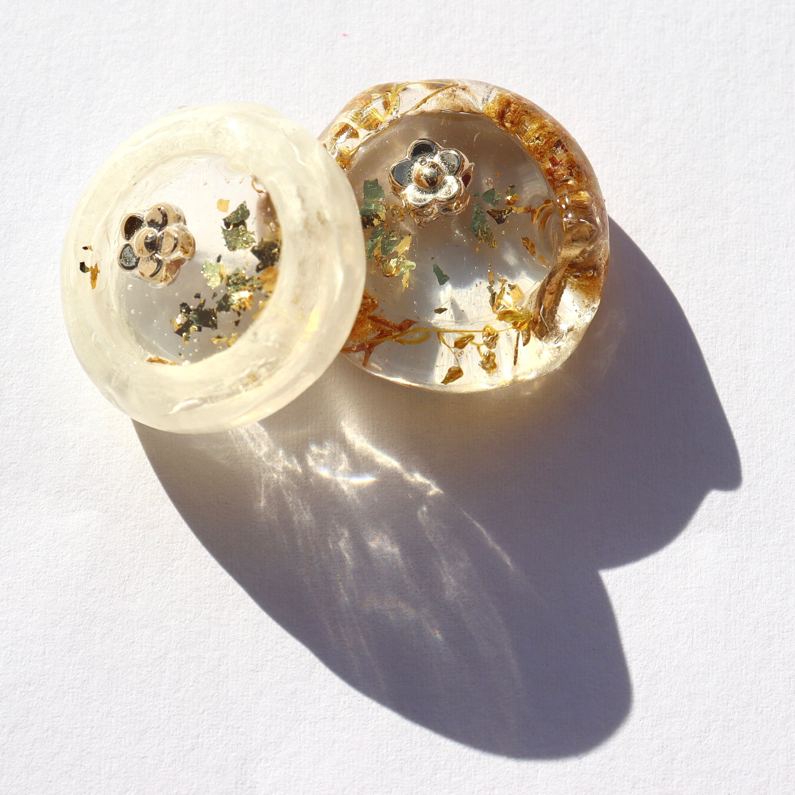 キラッと光るお花モチーフと金箔を閉じ込めました