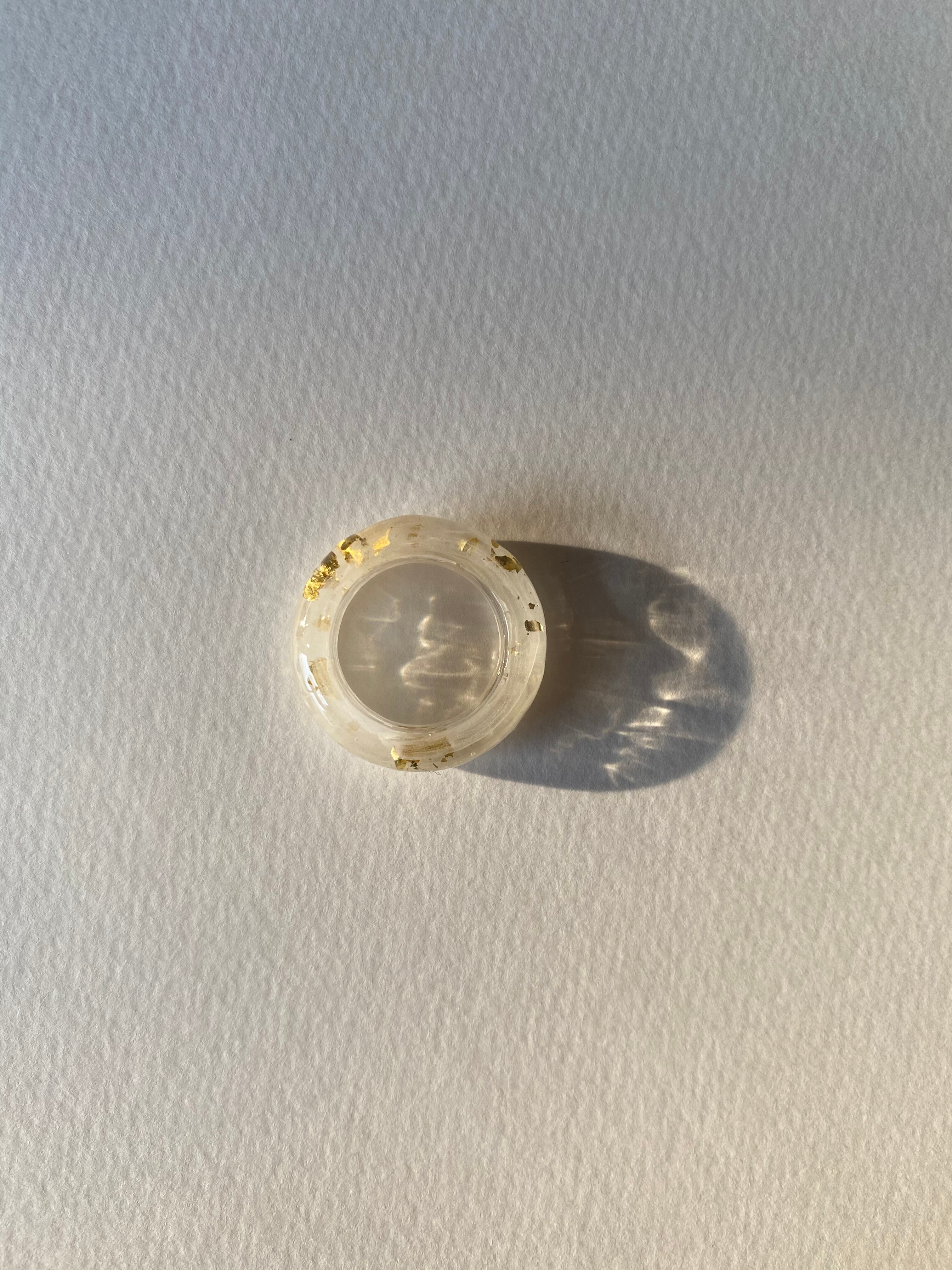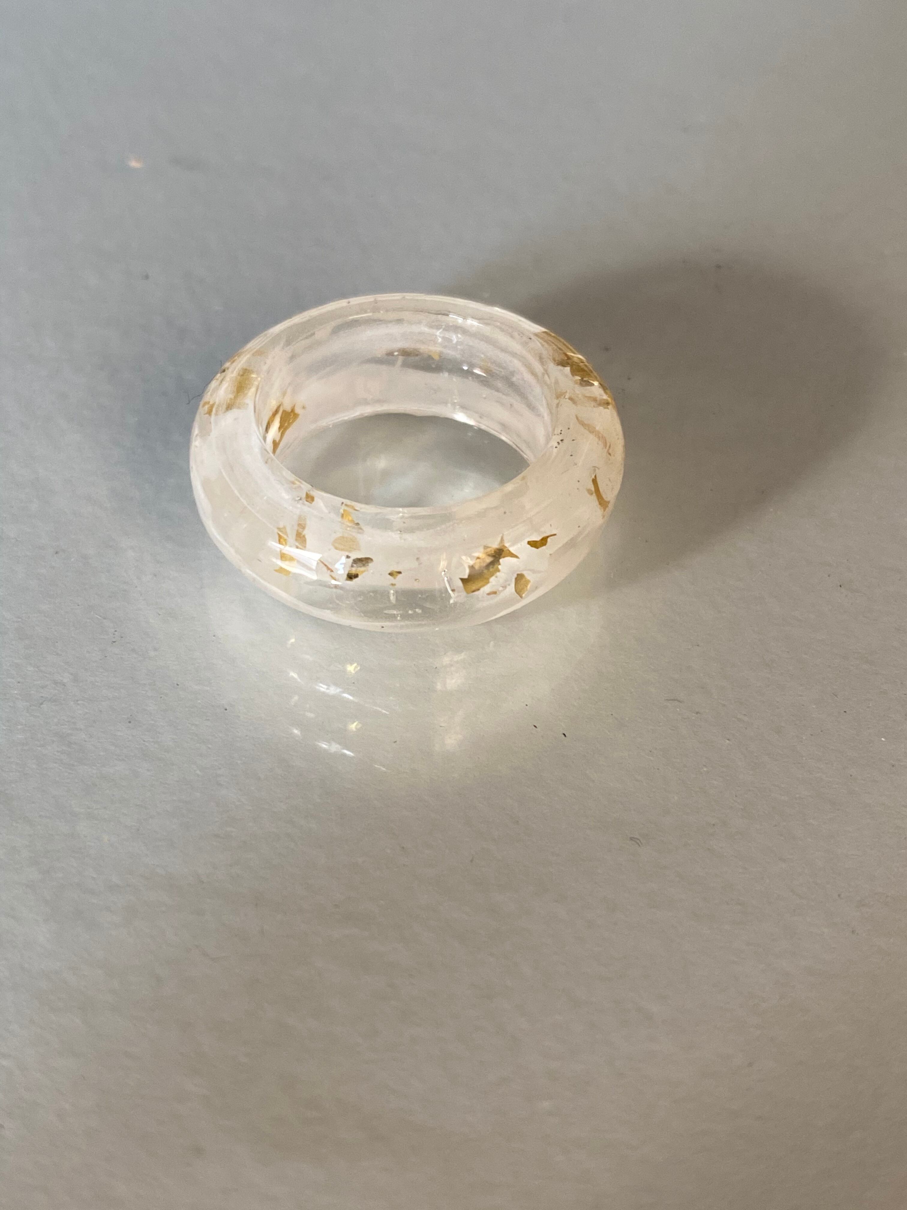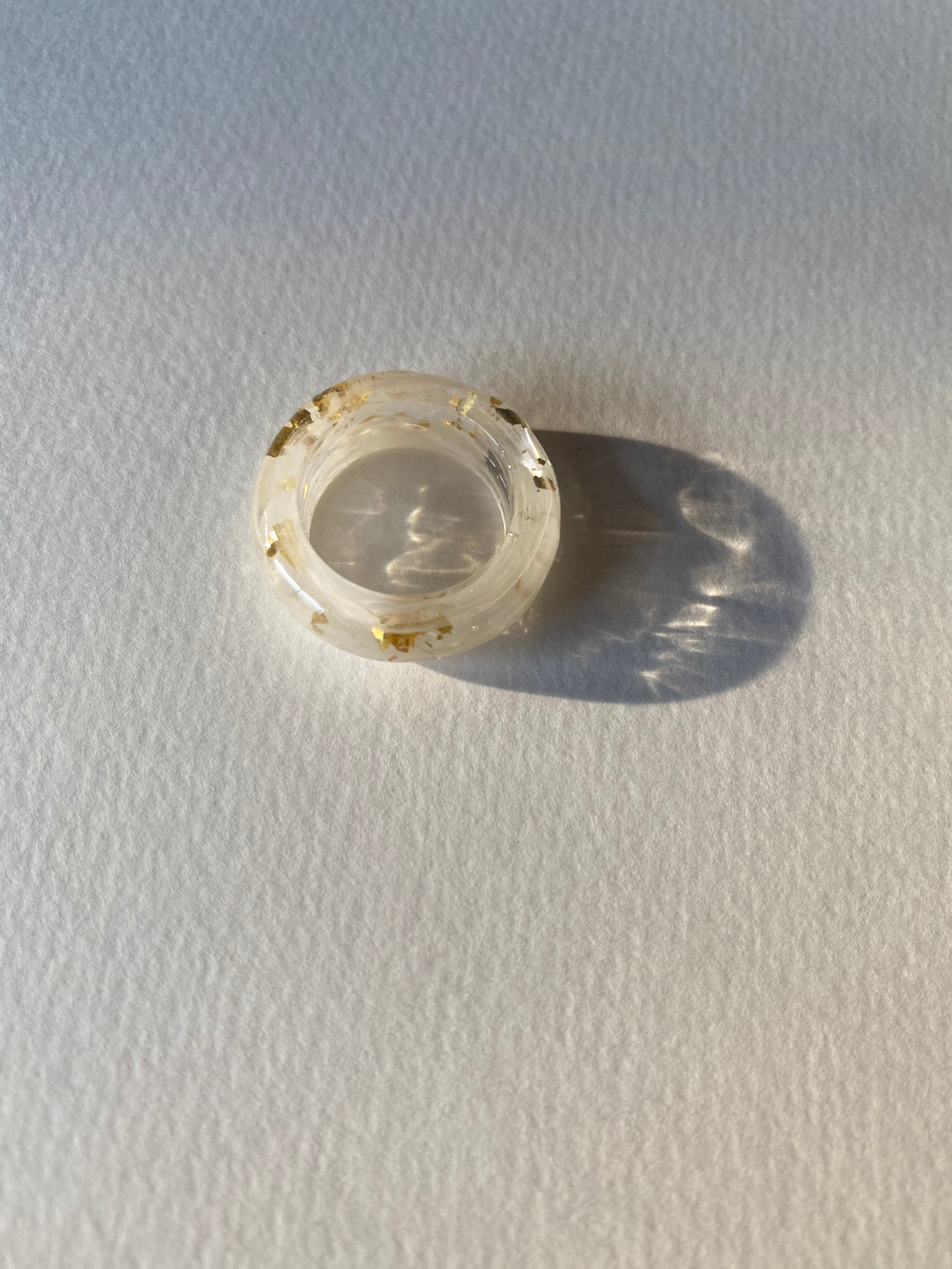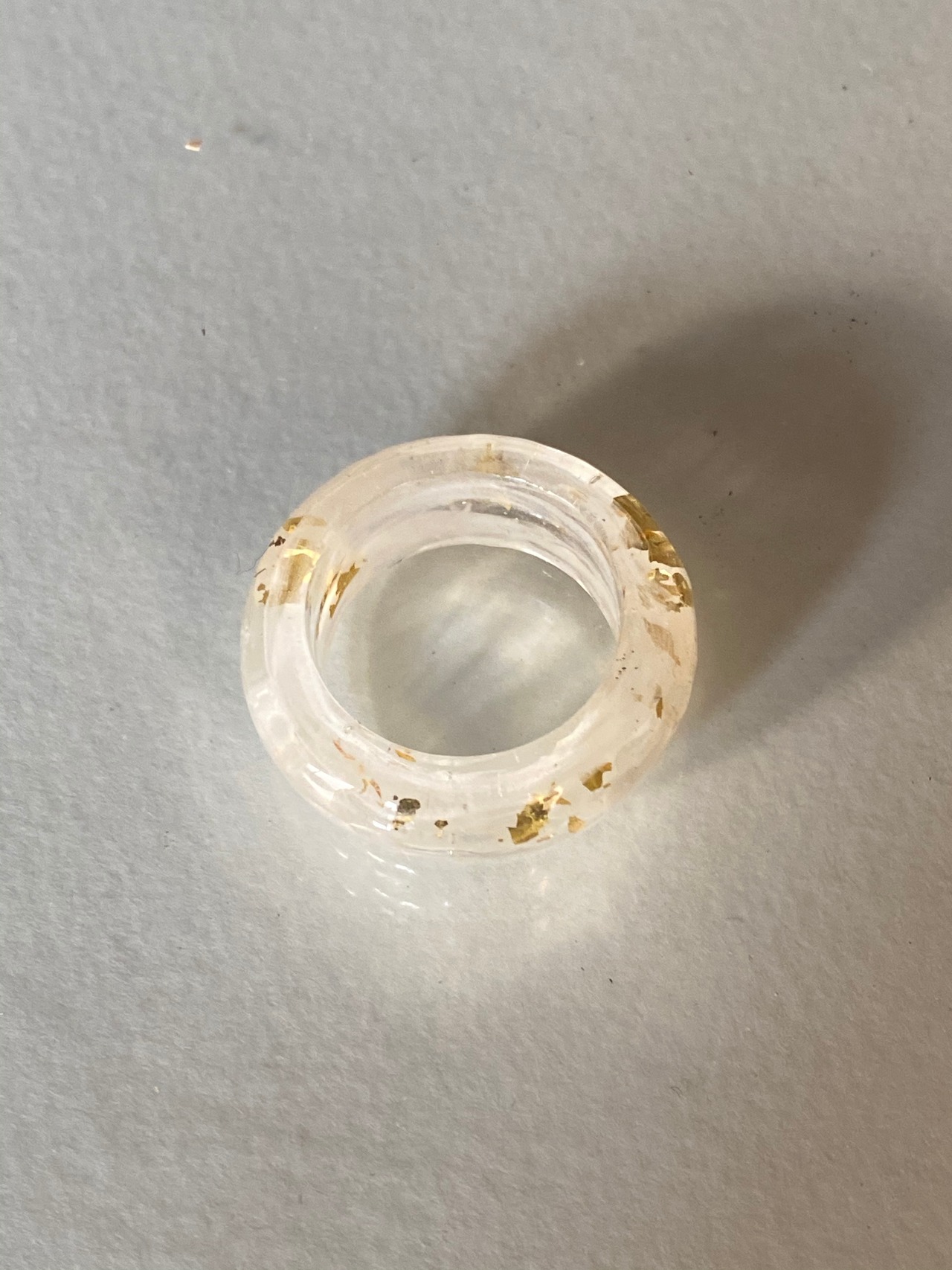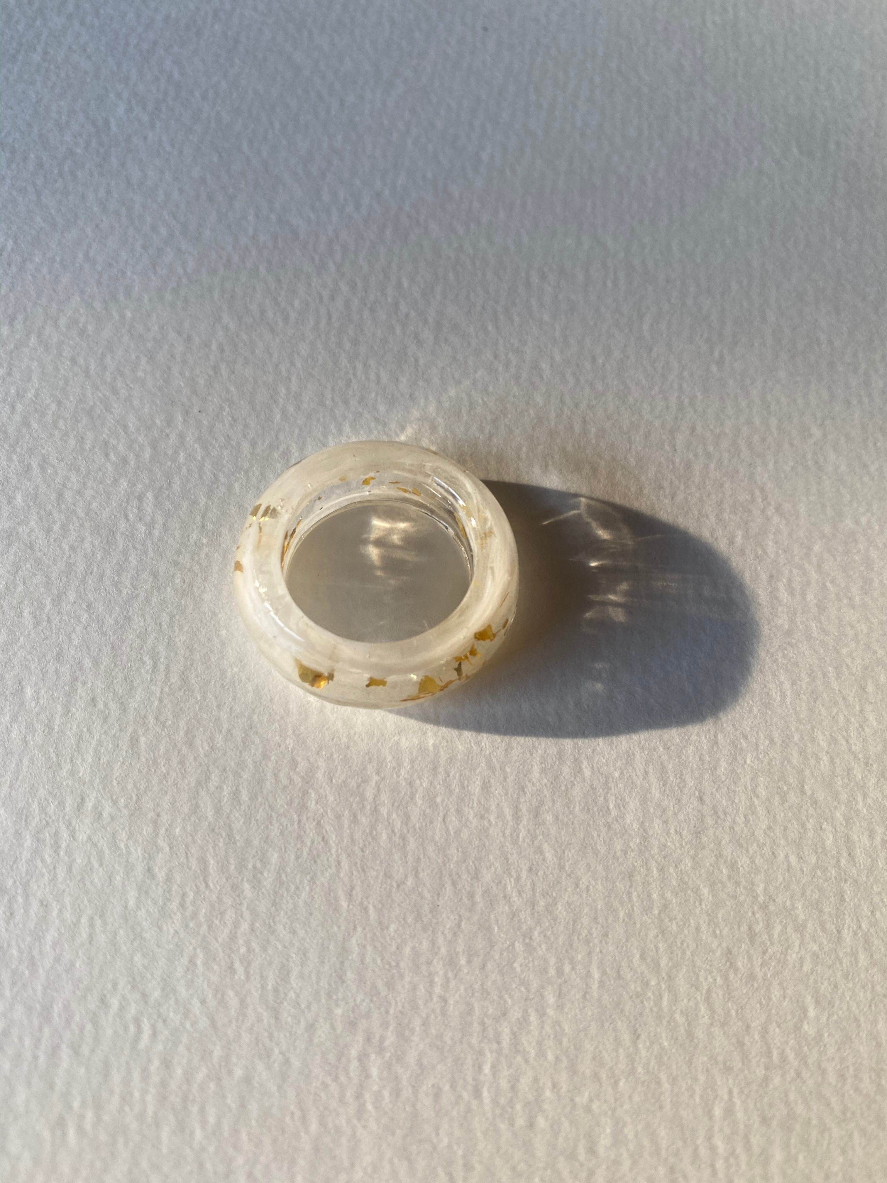 クリアリングに、金箔とホワイトのマーブルカラーを